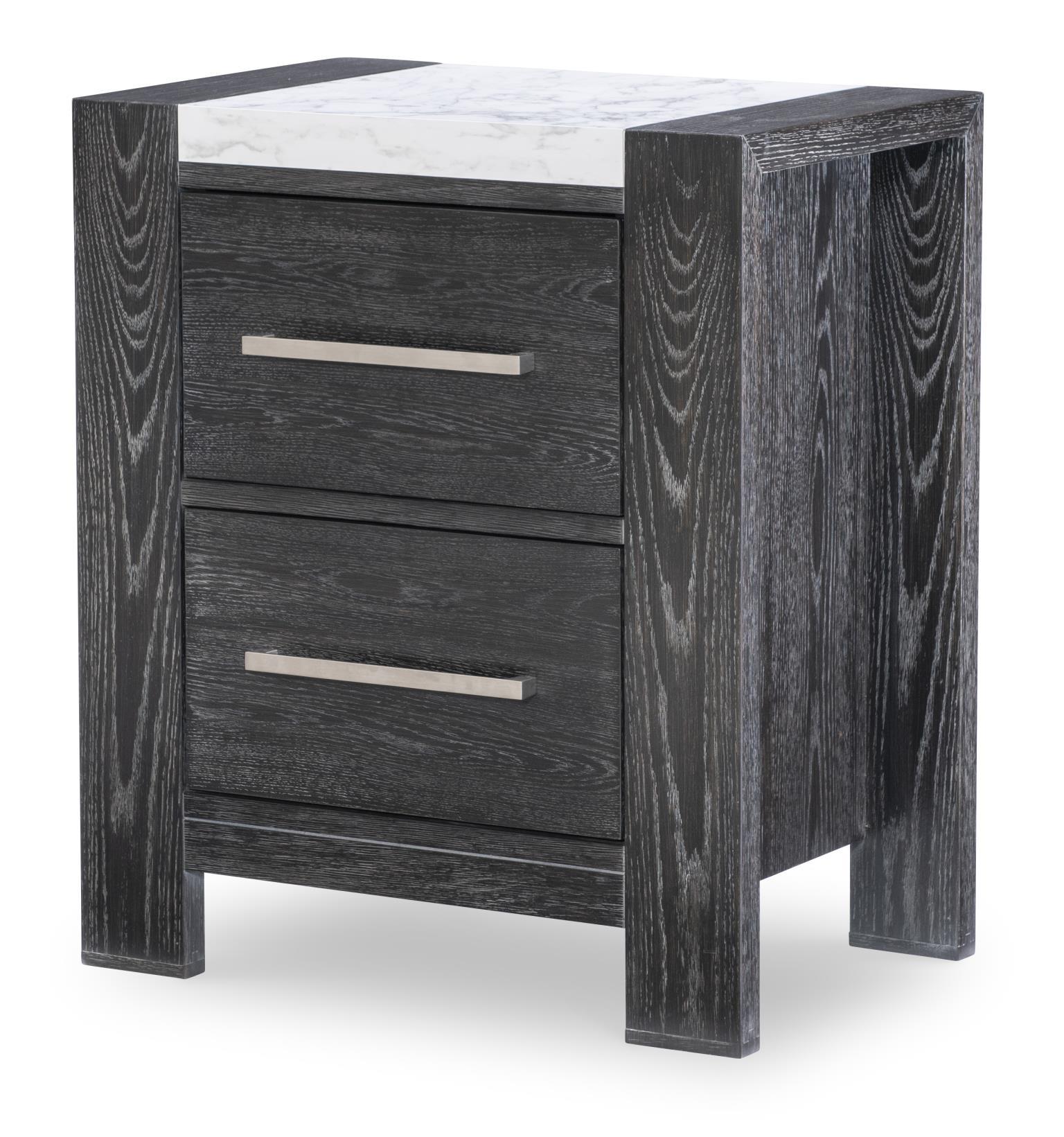 Casual elegance meets refined detail with the 5031 Horizons bedroom. The rich Espresso finish highlights the transitional appeal of oak veneer and select hardwood solids,, while modern design elements lend a fresh,, elevated touch to the bedroom. Marble laminate tops on the cases provide a cool contrast to the deep wood tones. Brushed nickel hardware pops against the dark finish. The panel headboard and dresser mirror feature marble laminate accents,, adding visual interest and tying into the case design. Designed with thoughtful craftsmanship,, drawers are built with French dovetail construction and ball bearing metal side glides,, offering smooth,, quiet function and quality. The bed is offered in twin,, full,, queen and king sizes.