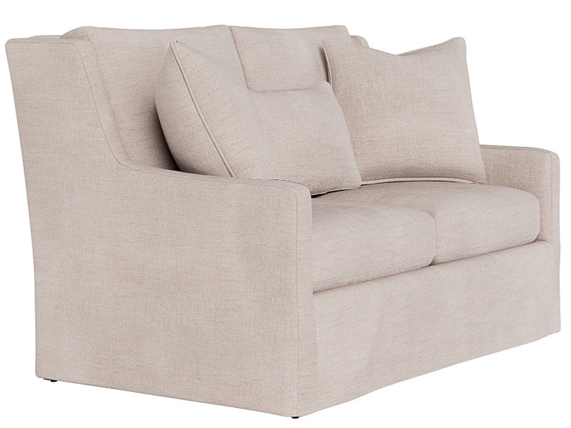The Hudson Slipcover Loveseat is upholstered as a slipcover for a more laid-back appearance. This design choice aims to create a relaxed atmosphere and a casual feel in your space.