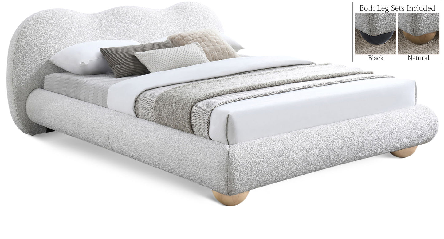 Escape to a haven of restful nights and luxurious mornings with the Hyde Boucle Fabric Bed, a versatile centerpiece that caters to your unique style and comfort preferences. The bed is enveloped in rich boucle fabric, its sumptuous texture adding depth and dimension to your bedroom. This captivating material creates a striking contrast against lighter bedding and decor, ensuring your bed remains a stylish focal point regardless of your chosen aesthetic. The appeal doesn't stop at beauty. It offers the unique option of both natural finish and black finish solid wood legs, included with each bed. This allows you to effortlessly adapt the bed to your existing decor or even transform its entire look with a simple switch. Unwind, relax, and experience the true meaning of blissful sleep with the Hyde Boucle Fabric Bed.
