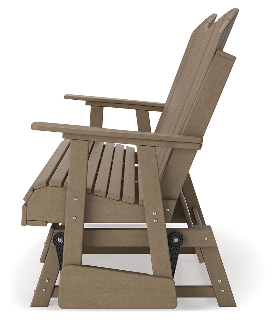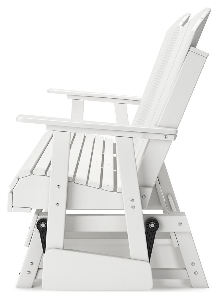 Drift away from everyday worries and into outdoor bliss with this glider loveseat. Dressed in a crisp white, the Adirondack-inspired design has a classic feel. It weathers sunny summer days and cozy winter nights with durable MEGA TUFF™ HDPE material. A drop-down console with integrated cup holders keeps refreshments and snacks within easy reach. With the console snapped into the back, this loveseat has even more room for enjoying lazy days in the shade.