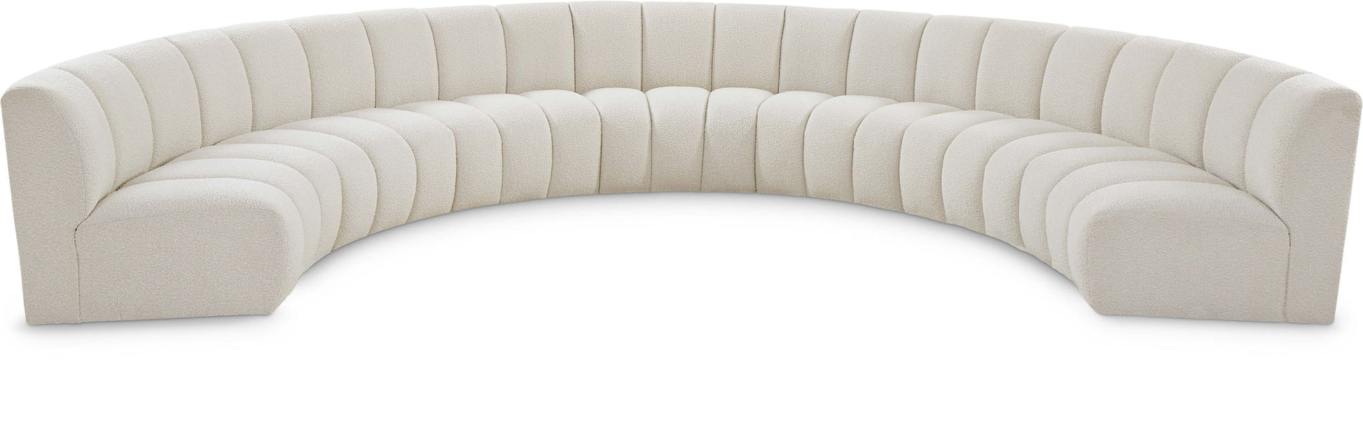 Mix and match this Infinity boucle fabric modular chair with other items in the Infinity collection to find the best possible seating solution for your gang. Rich boucle fabric feels welcoming and soft to the skin, so you stay seated comfortably for the big game or while watching your favorite programs. Deep channel tufting adds to the longevity and durability of this modular chair while giving it texture.