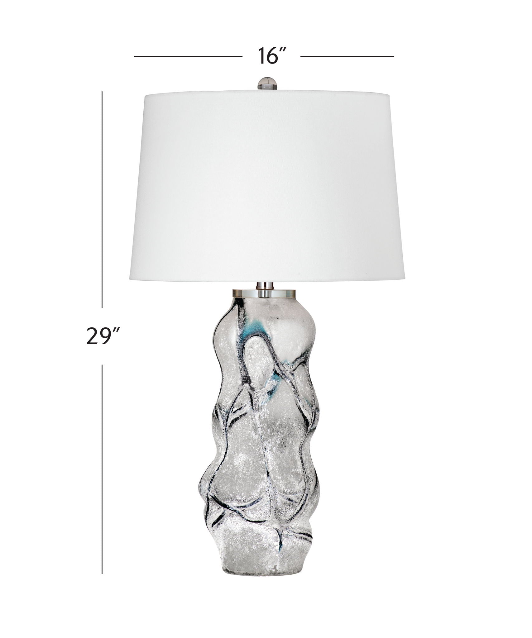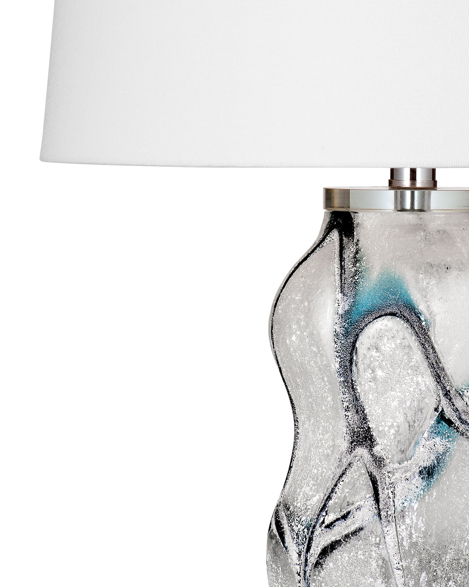 The Ion Table Lamp showcases meticulous craftsmanship with its art glass construction and a refined design. The lamp is adorned with a white linen tapered shade, adding an elegant touch to its aesthetic appeal. Finished in frosted white, black, and blue tones, the Ion Table Lamp presents a harmonious blend of colors that enhances its visual allure. This thoughtfully crafted lamp stands as a distinguished addition to interior spaces, seamlessly merging enduring design with a touch of contemporary allure. The frosted white, black, and blue finishes complement the art glass body, creating a captivating contrast. With its stylish design and meticulous attention to detail, the Ion Table Lamp not only adds a modern flair to any room but also provides a soft and inviting illumination, making it a versatile and tasteful contribution to interior decor.