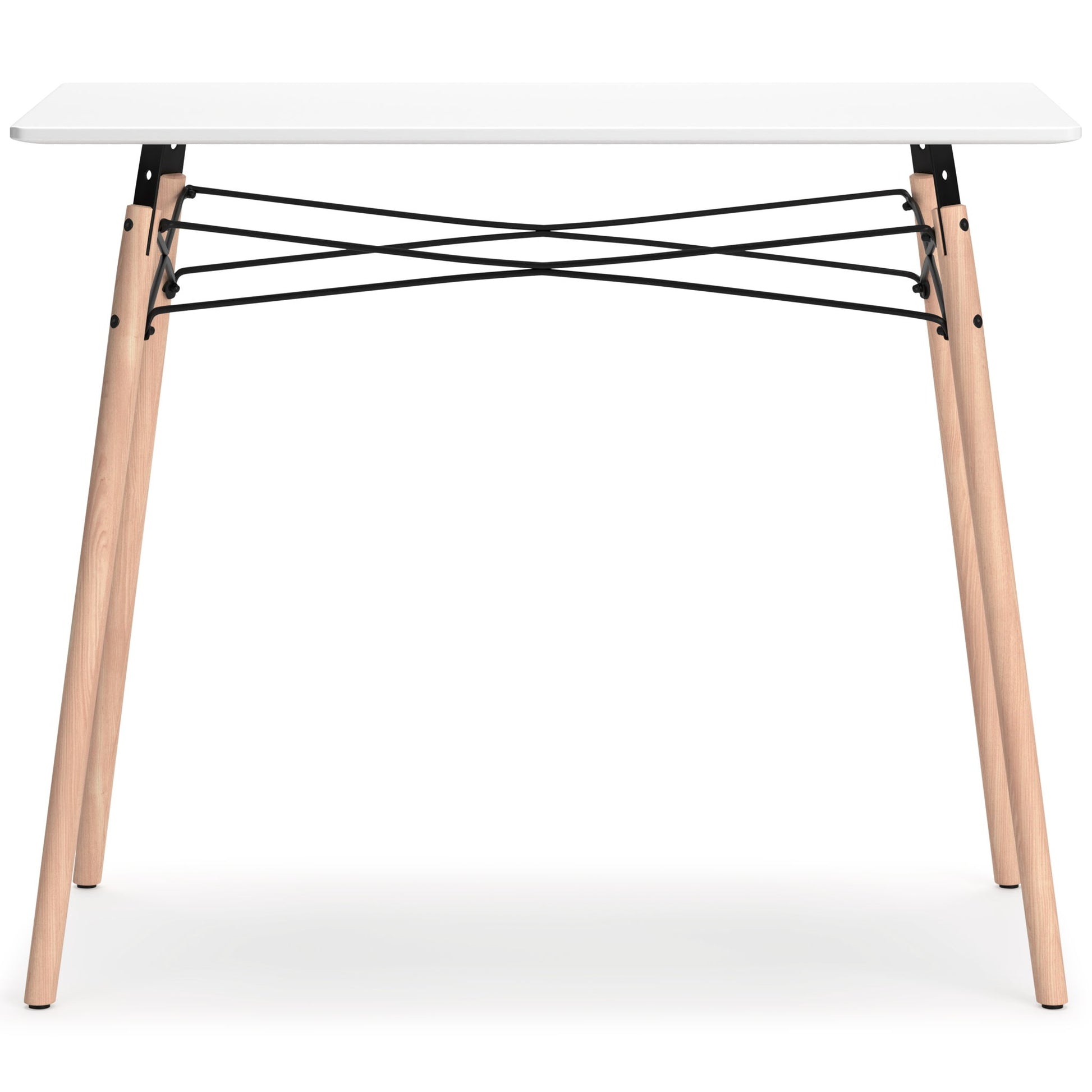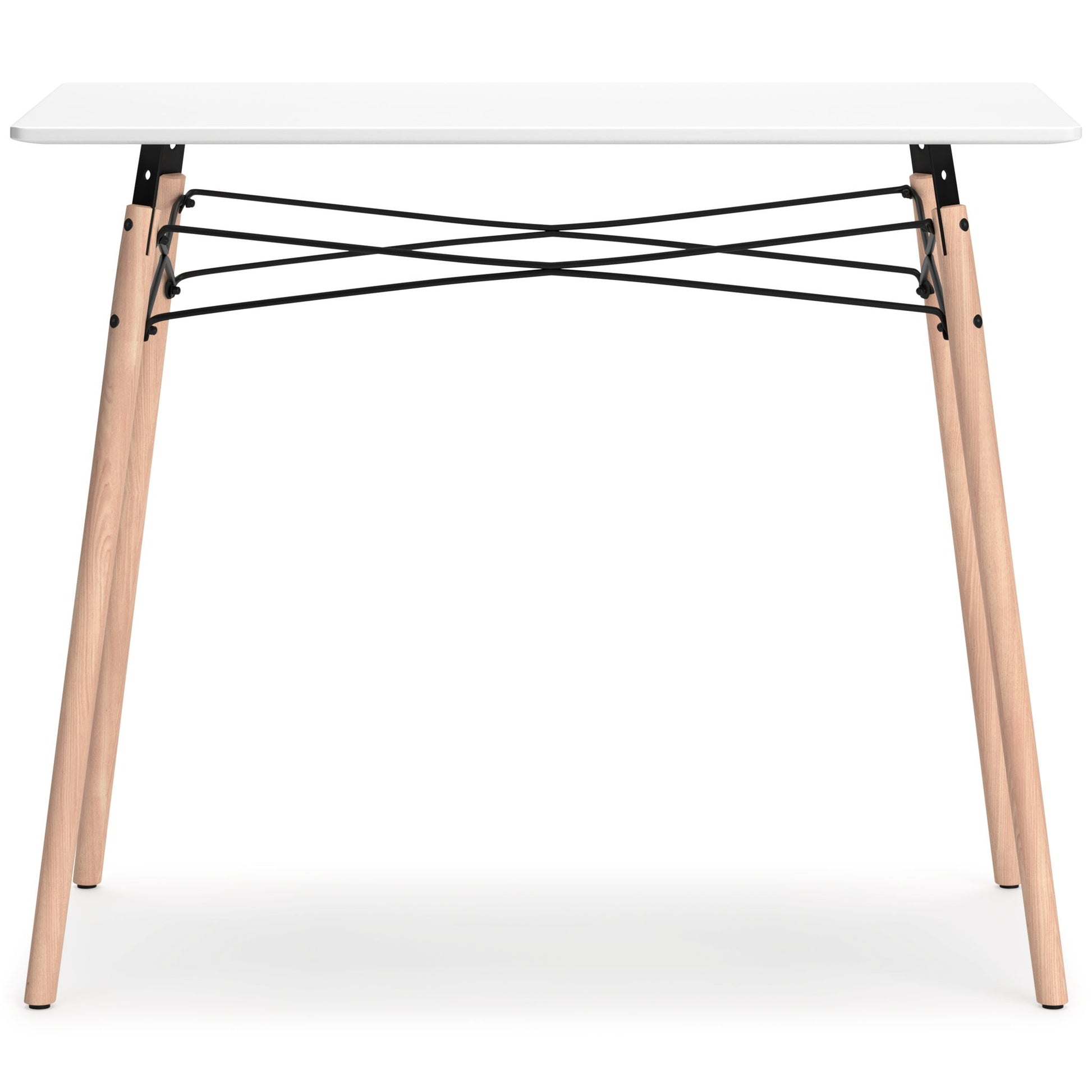 A contemporary take on a classic look, this home office desk adds a touch of artistic flair to your at-home work experience. It's designed with small space living in mind, and is perfect for small apartments and dorms. With its painted top, metal framework and wood legs, this rectangular desk is intricately eye-catching, allowing you to work in style.