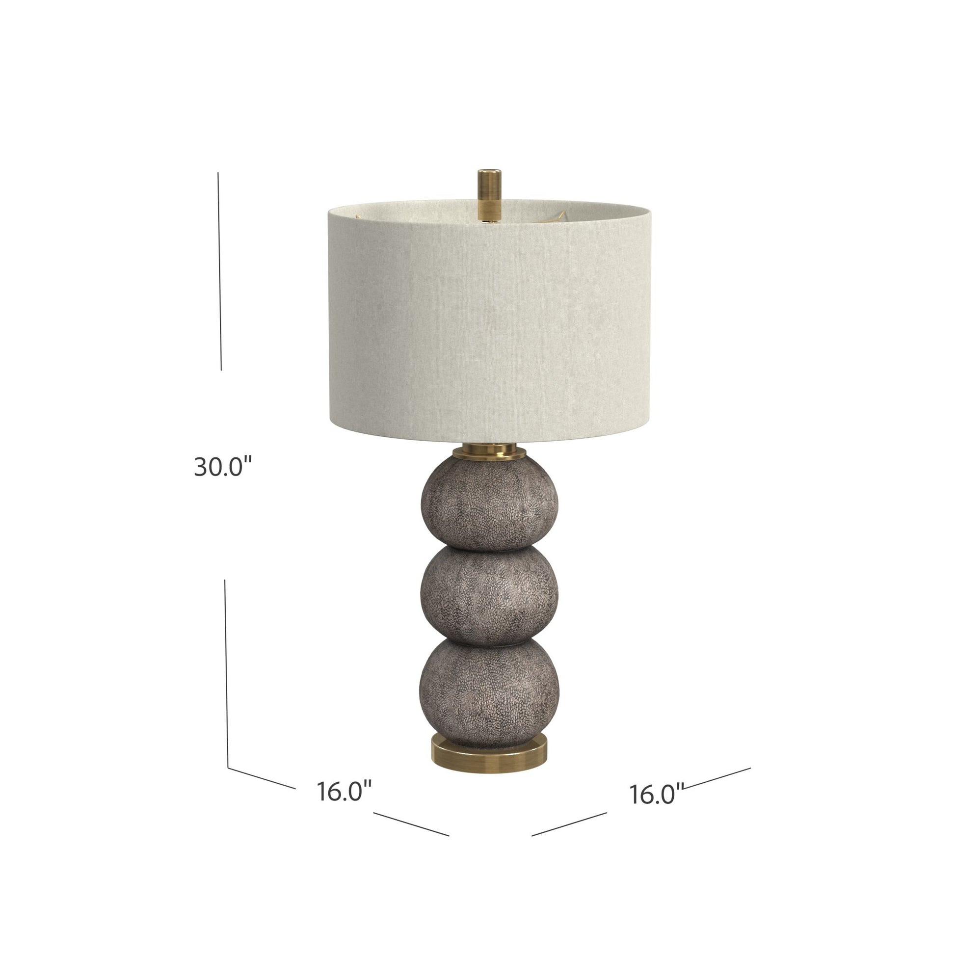 The Jed Table Lamp is crafted of polyresin in a Cream and Dark gray finish with a natural linen drum shade. Finished in an Antique Leather look.