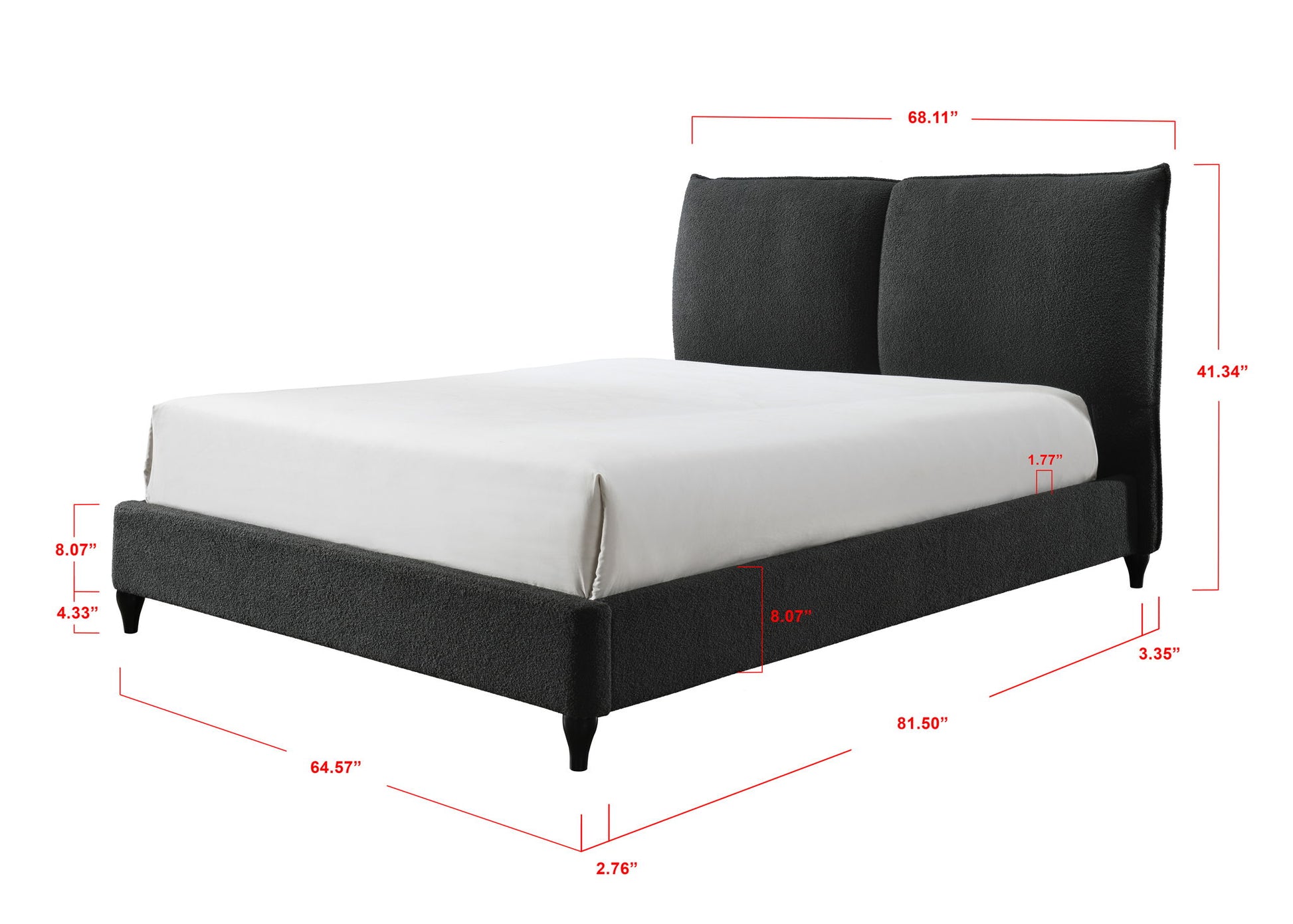 This lush contemporary bed frame is the perfect place to end your day. On trend boucle upholstery is stylish and timeless. Optional decking boards let you decide whether or not to use a box spring.