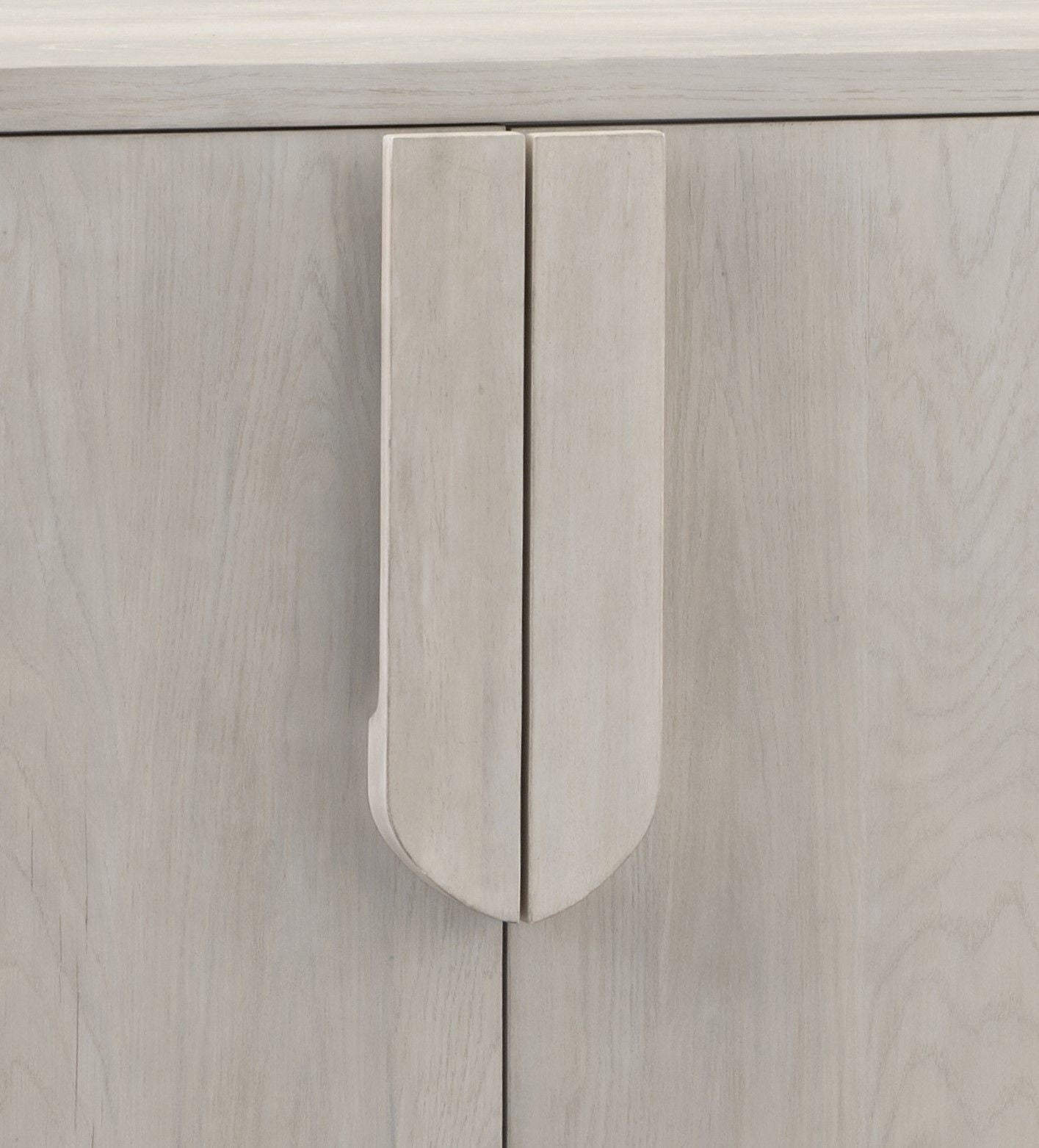 - Its minimalist design highlights the charming washed blonde oak finish and gentle curves that extend across the collection