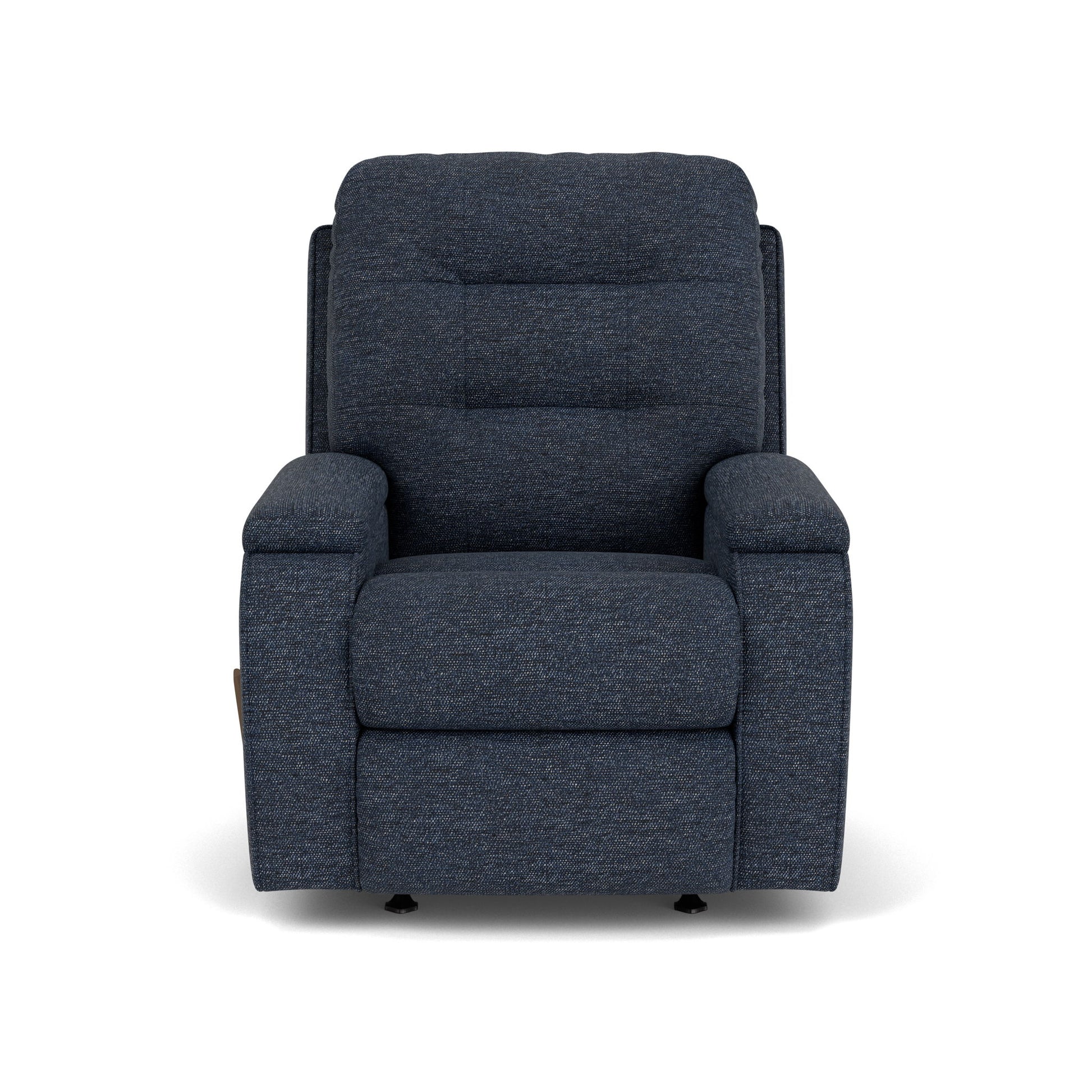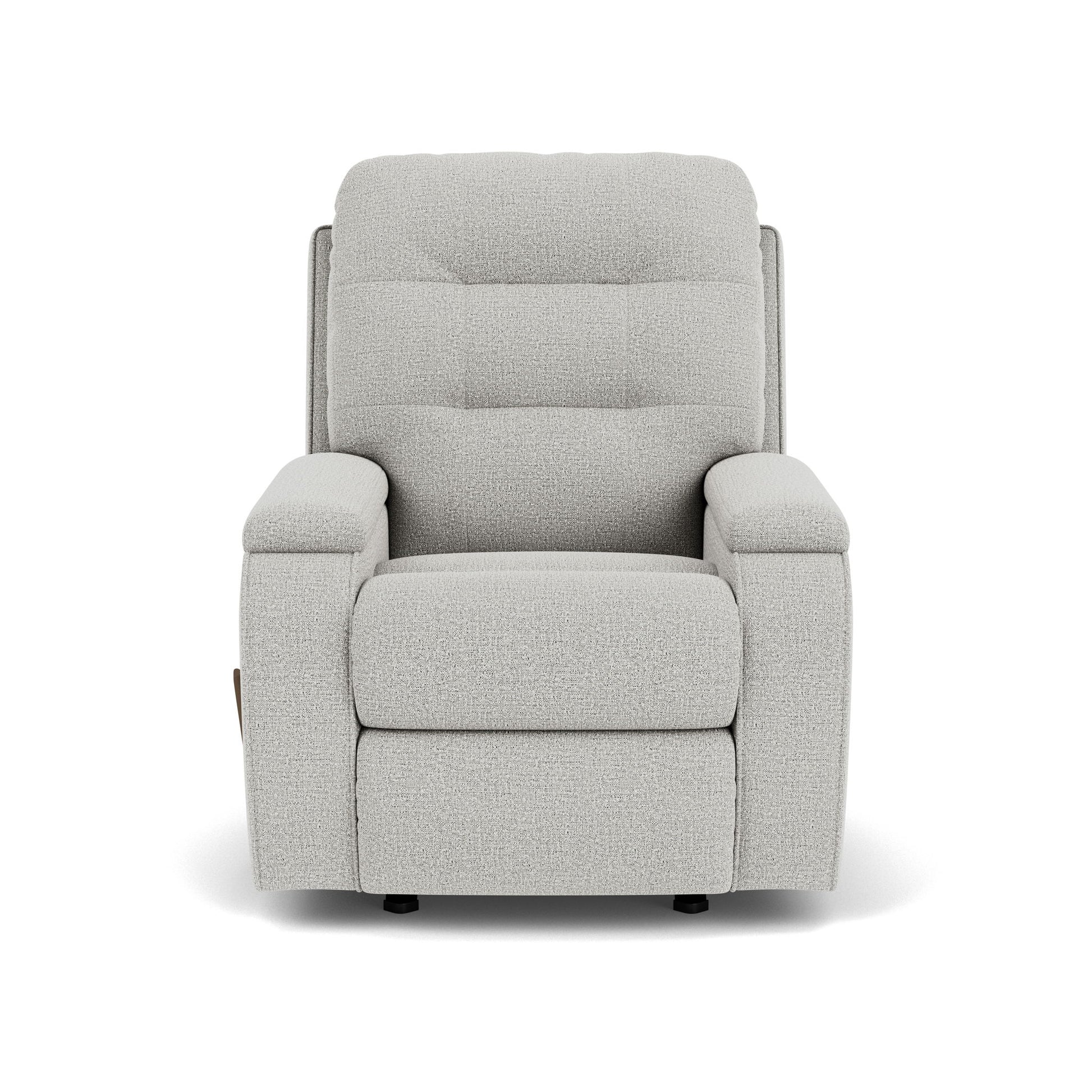 Exceptional comfort with refined contemporary style. Kerrie should rest on a runway. It exudes the comfort, styling, and scale fitting of first-class seating on any airline. The recessed pad on the curved arm, the fully padded footrest, and the tufted back give Kerrie its superior comfort, support, and contemporary flair. Rock back and forth while relaxing, or effortlessly recline at multiple angles from an upright to a fully reclined position.