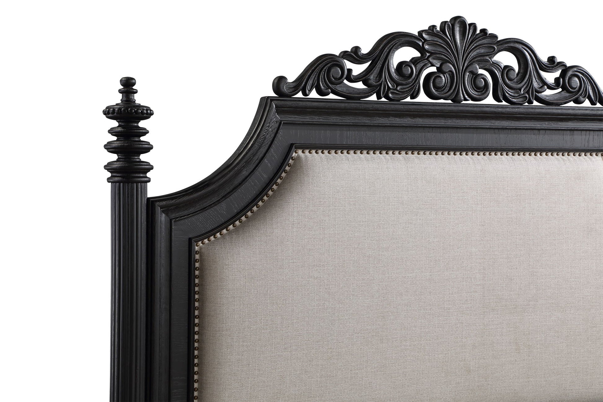 Indulge in the timeless elegance of this exquisite bedroom collection, a true embodiment of classic sophistication. Each piece is masterfully constructed with a striking finish that commands attention while accentuating the intricate detailing and flowing lines. The magnificent bed, with its bold headboard, has an optional pediment and is upholstered to create a stunning contrast that promises opulent comfort. Complementing the bed are the sleek nightstands and capacious dresser, each graced with antique finish hardware against the matte background.