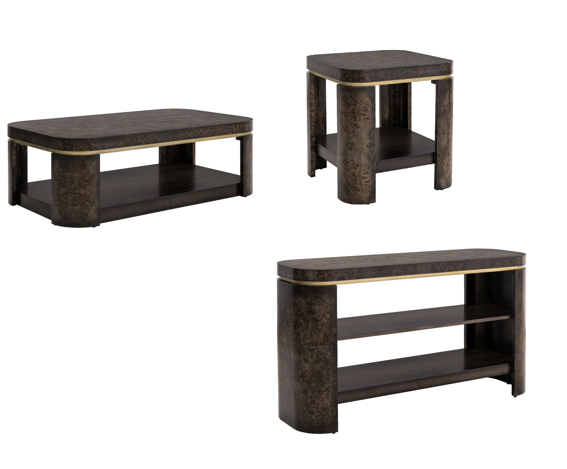 The Langford Console Table embodies modern elegance with a bold, refined presence. Expertly crafted from solid wood and select mappa burl veneers, its rich ebonized finish enhances the natural beauty of the intricate burl grain. The table’s smooth, rounded corners and sculptural end panels create a soft yet substantial silhouette, making it a standout piece in any entryway or living space. Both functional and artful, the Langford Console Table adds a sophisticated touch to contemporary interiors.