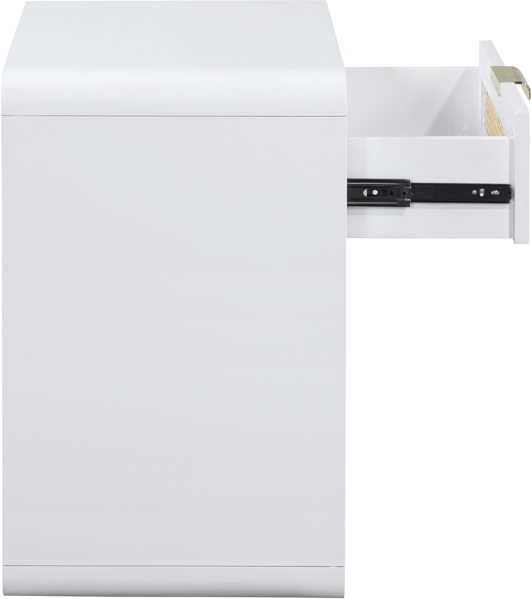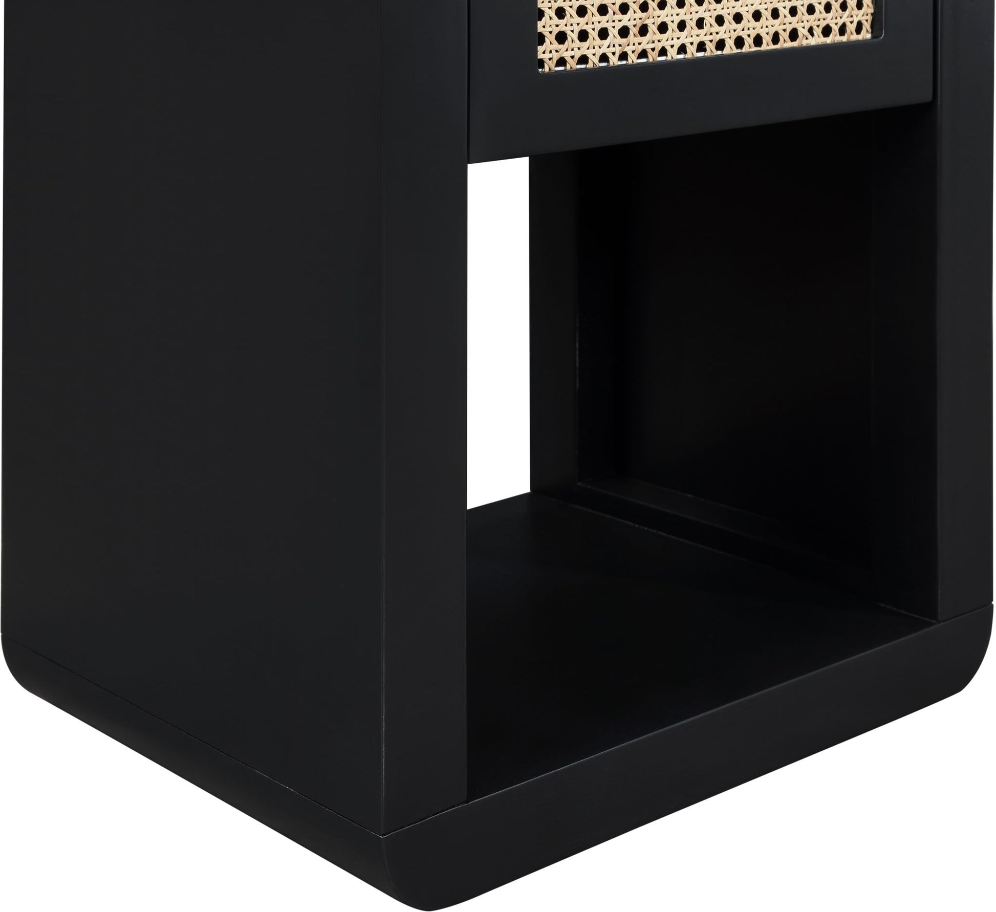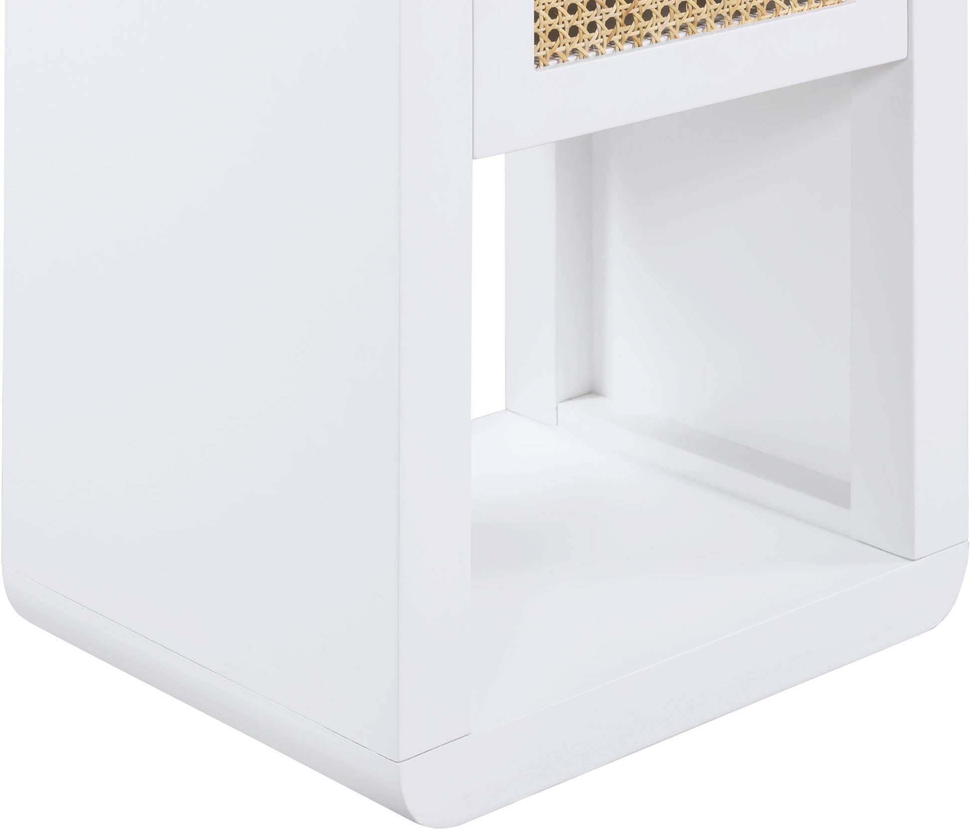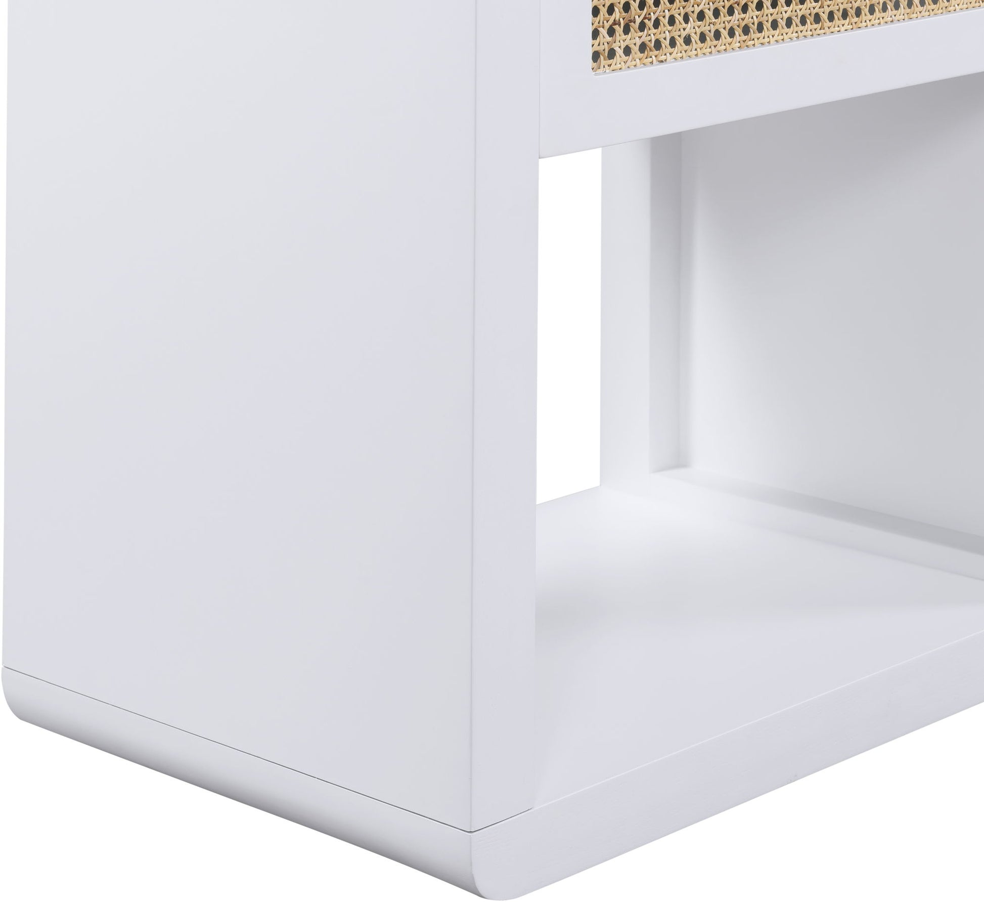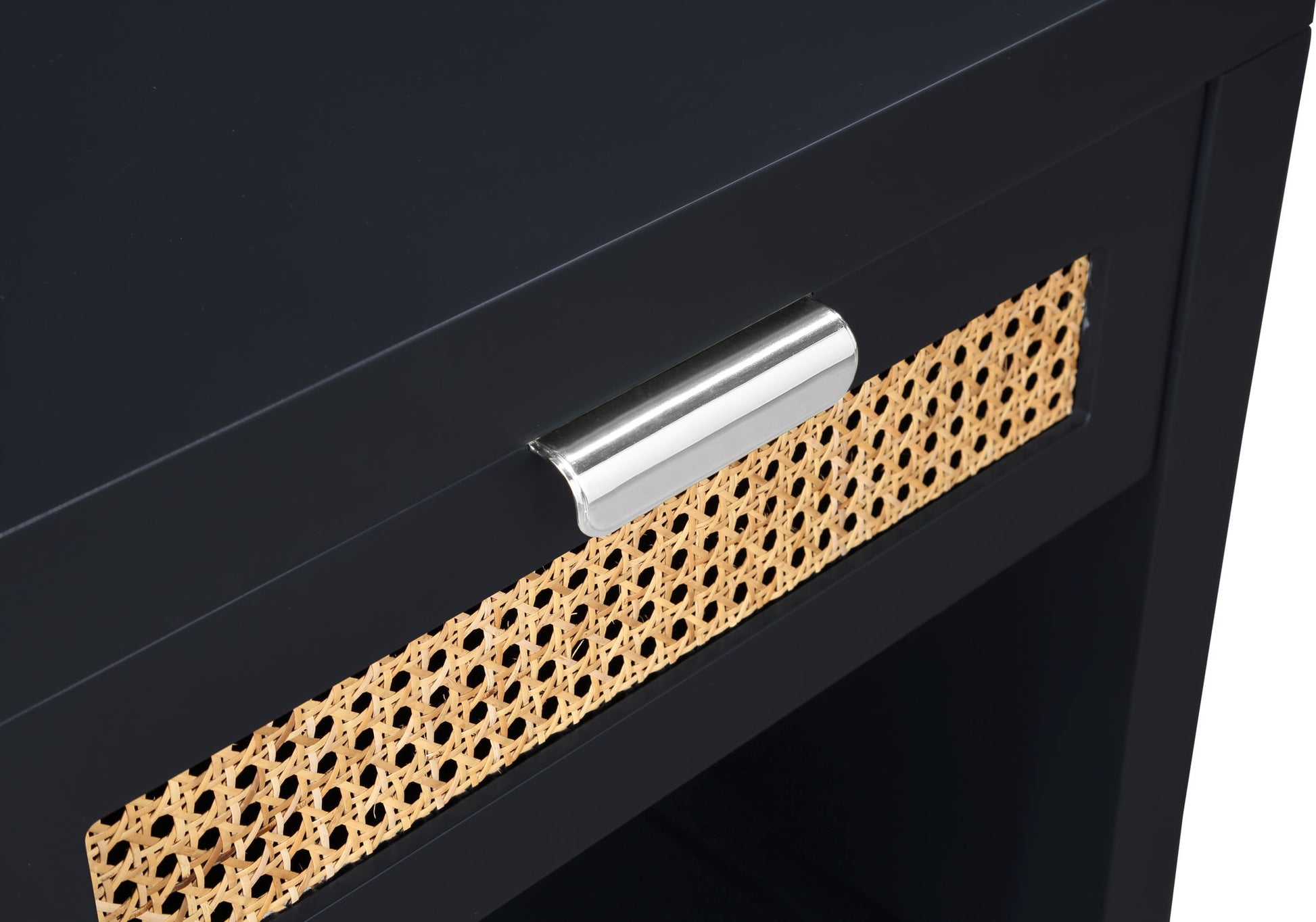 Lend your bedroom a distinctive touch with this Langham night stand from Meridian Furniture. Featuring an open, rectangular design and a natural cane drawer front, this night stand is truly unique. A sleek finish complements the existing decor in your bedroom; both brushed brass and handles are included so you can choose which one best matches your decor. This night stand s mid century design is the perfect addition to your living space.