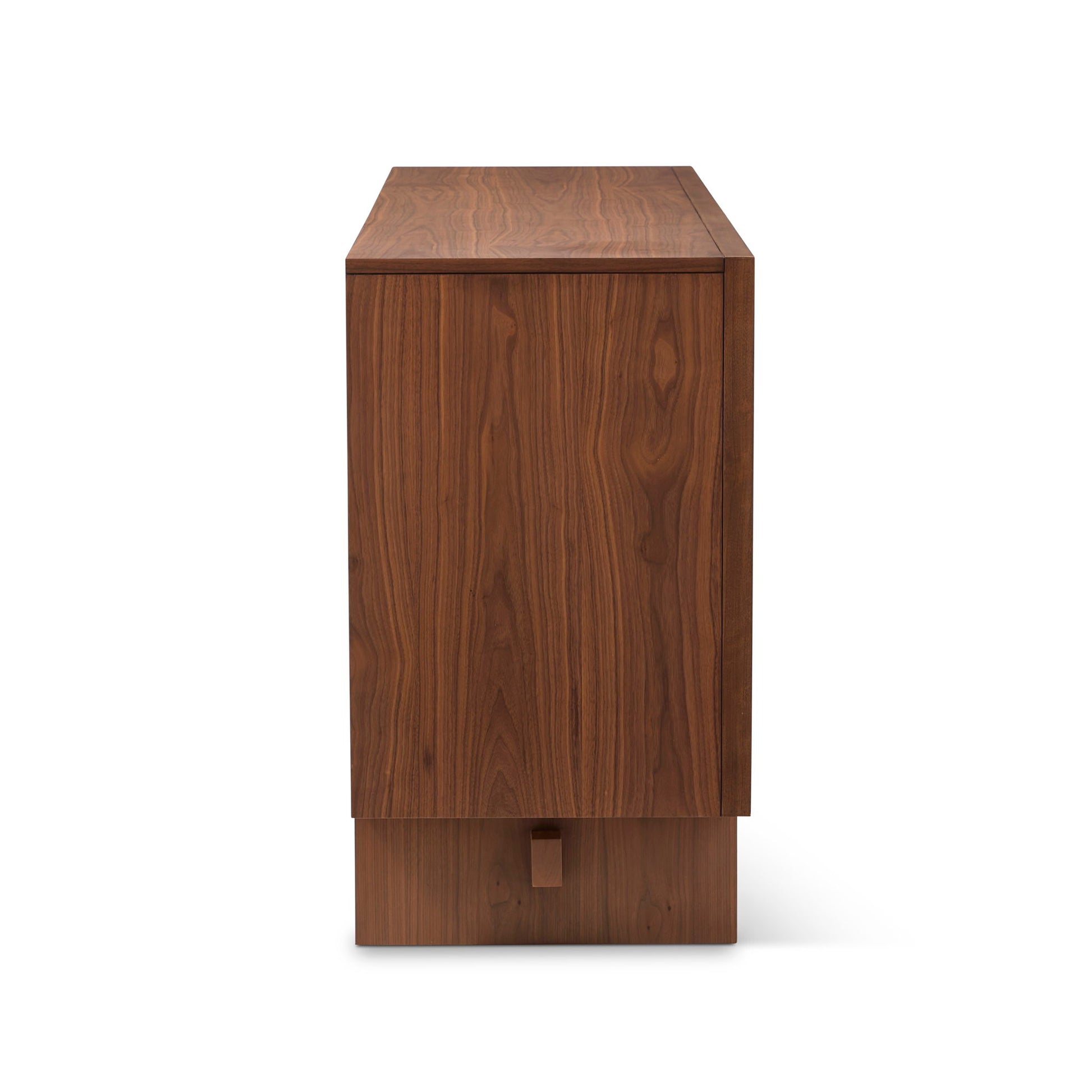 Meet the new crown jewel of your dining room. Our Lincoln buffet takes inspiration from influential architect Frank Lloyd Wright, to bring timeless style to the present. Elegance and utility come together in this piece with ample space to store everything you need for your next dinner party. Containing two storage cabinets with adjustable shelves and three drawers, the Lincoln buffet makes dining organization a breeze. Embellished with gleaming gunmetal hardware, the Lincoln is show-stopping from a distance, with details to make you look closer.