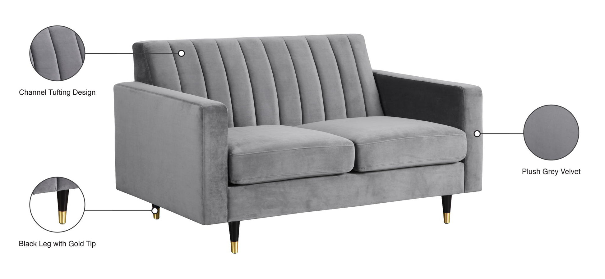 Cozy up to the comfort of this Lola Loveseat. Its rich color adds a jolt of excitement and fun to your space, shaking things up in a neutral-colored room. The back is channel tufted for a beautiful, contemporary look and to help the back cushioning maintain its welcoming loft. Elegant slant-tipped legs with tips lend this loveseat a charmingly modern finish and provide a sturdy foundation. Add it on its own, or add the matching sofa and chair for a coordinated look.