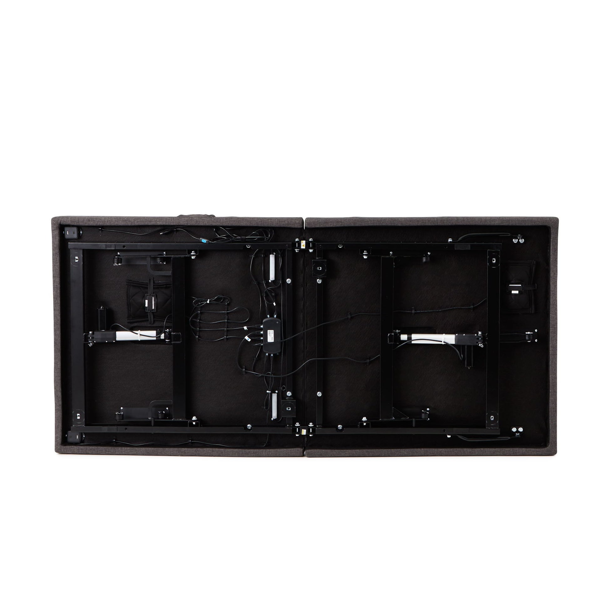 The M555 Adjustable Bed Base takes relaxation to the next level. With five preset positions (Zero Gravity, Anti Snore, Lounge, TV, and Flat), you can adjust your comfort whenever and however you want. This bed base has an advanced vibration massage system with four types, three intensities, and three time settings. Vibrational massage focuses on specific areas of the body and offers higher intensity than a traditional hand massage. Built-in Bluetooth® makes it easier to customize your sleep preferences with the MALOUF® Base app (Android and iOS), and the dual charging ports allow you to charge your device throughout the night. This base also includes a backup battery to power your base in the event of a power outage. Finally, the sleek, lined-inspired upholstered frame in Stone looks great on its own or fits into most existing bed frames. Since it’s true zero clearance, it can sit directly on foundations, platform bases, slat beds, or the ground.