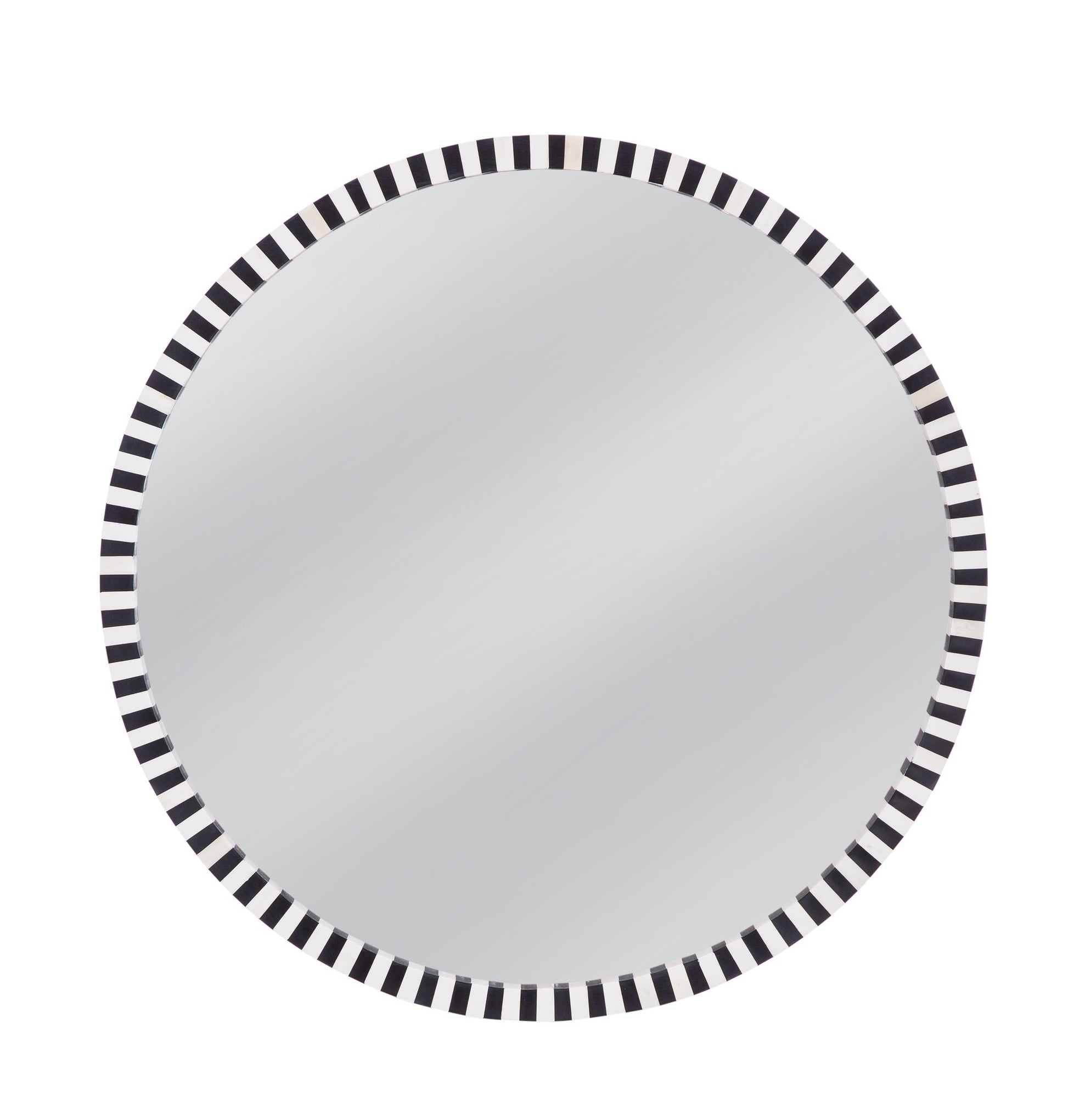 The MacArdle Wall Mirror boasts a charming round design adorned with an intricate geometric pattern, beautifully finished in black and cream. This modern boho piece adds character to any space, effortlessly blending contemporary aesthetics with artisanal flair. Crafted with quality materials, it promises durability and style, making it a delightful accent for your home decor.