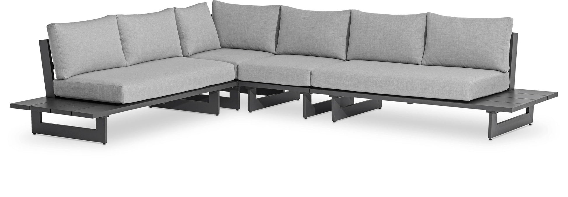 Maldives - 4 Piece Water Resistant Outdoor Patio Modular Left Arm Facing Sectional With Gray Base - Gray
