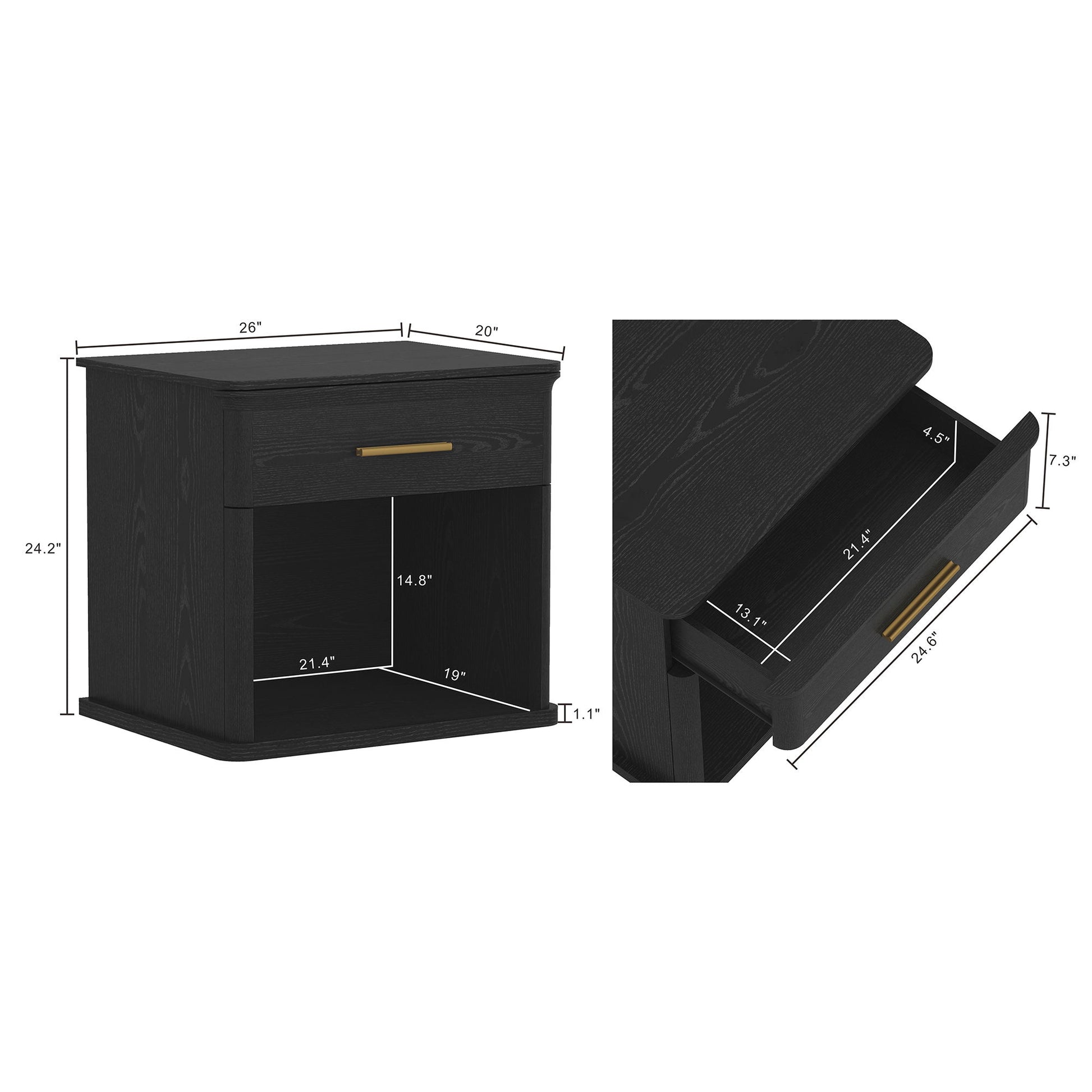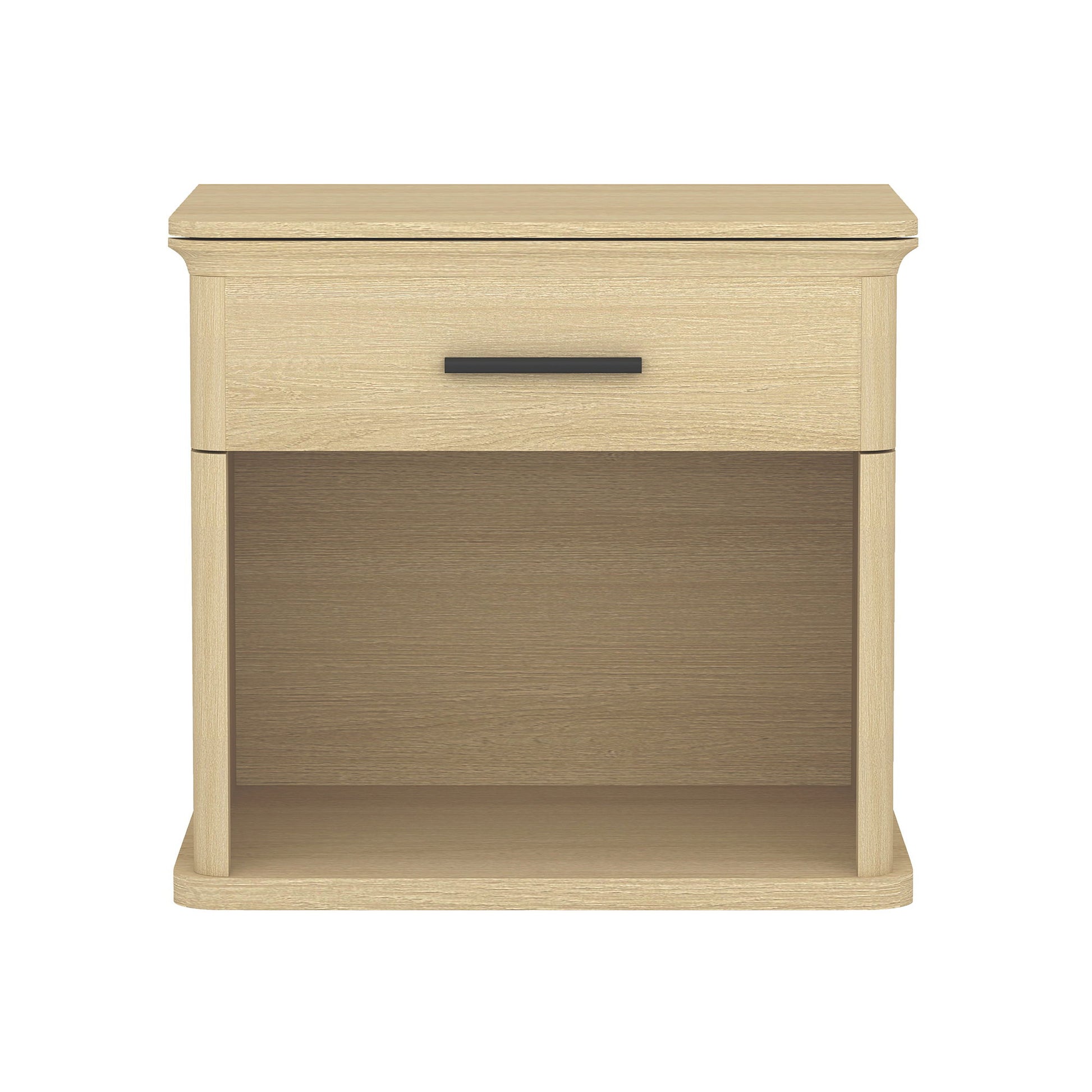 Add warmth and functionality to your bedroom with the Clifford nightstand featuring a wood grain laminate finish. A smooth-gliding drawer with easy-glide non-ball-bearing tracks keeps essentials close at hand, Finished with sleek hardware and softly rounded edges, this versatile nightstand pairs well with modern and transitional interiors.