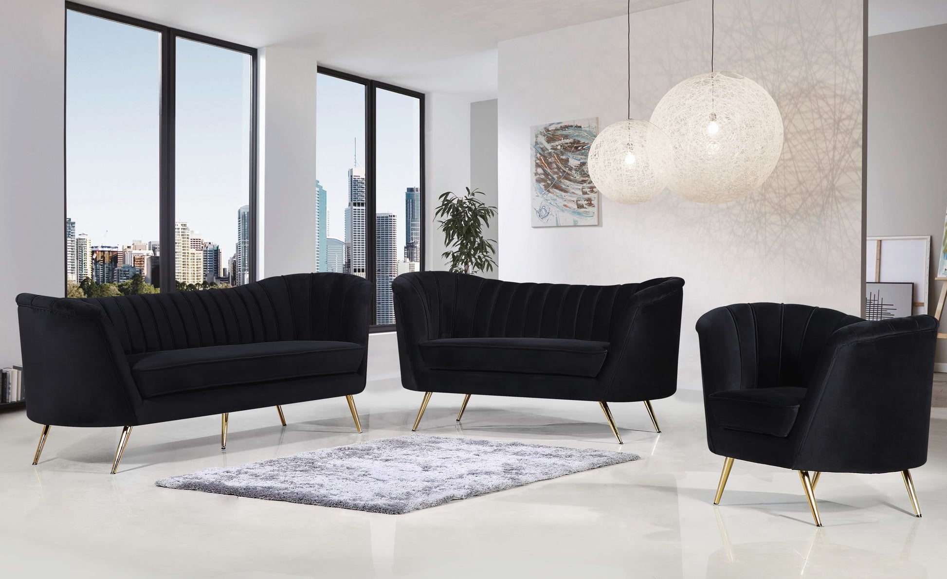 Lean back and lounge in luxurious style on this stunning Margo velvet loveseat by Meridian Furniture. This contemporary loveseat features plush velvet upholstery that is both classy and sumptuous against your skin, a single seat cushion and rounded arms that curve into a low, rounded back, creating a perfect, modern piece for your home. stainless steel legs support this loveseat and provide stunning contrast to the loveseat's plush, fabric.