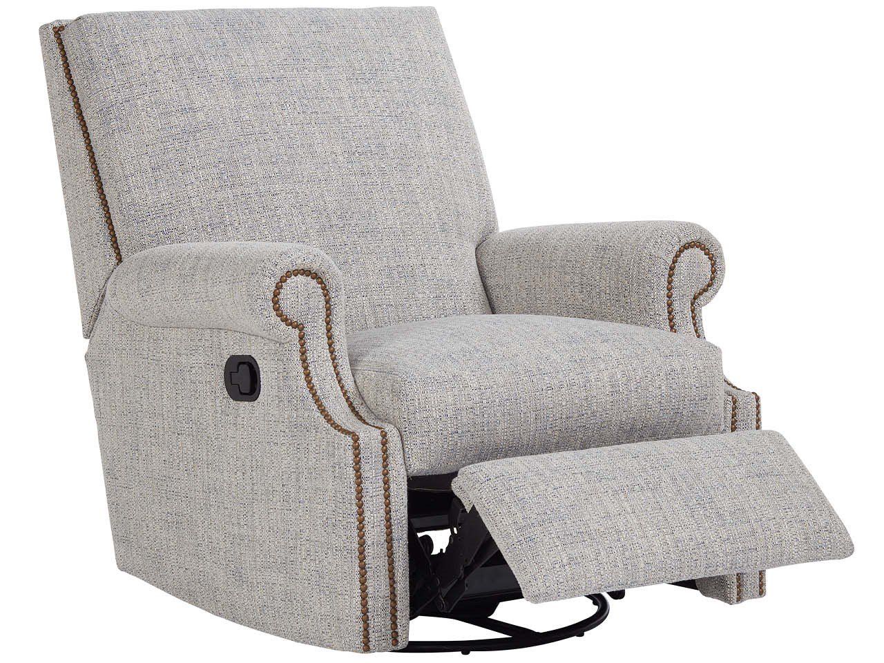 Classic in appearance but modern in function, the Maria Swivel Glider Recliner features rolled armrests with nailhead trim and a swivel base with reclining functionality.