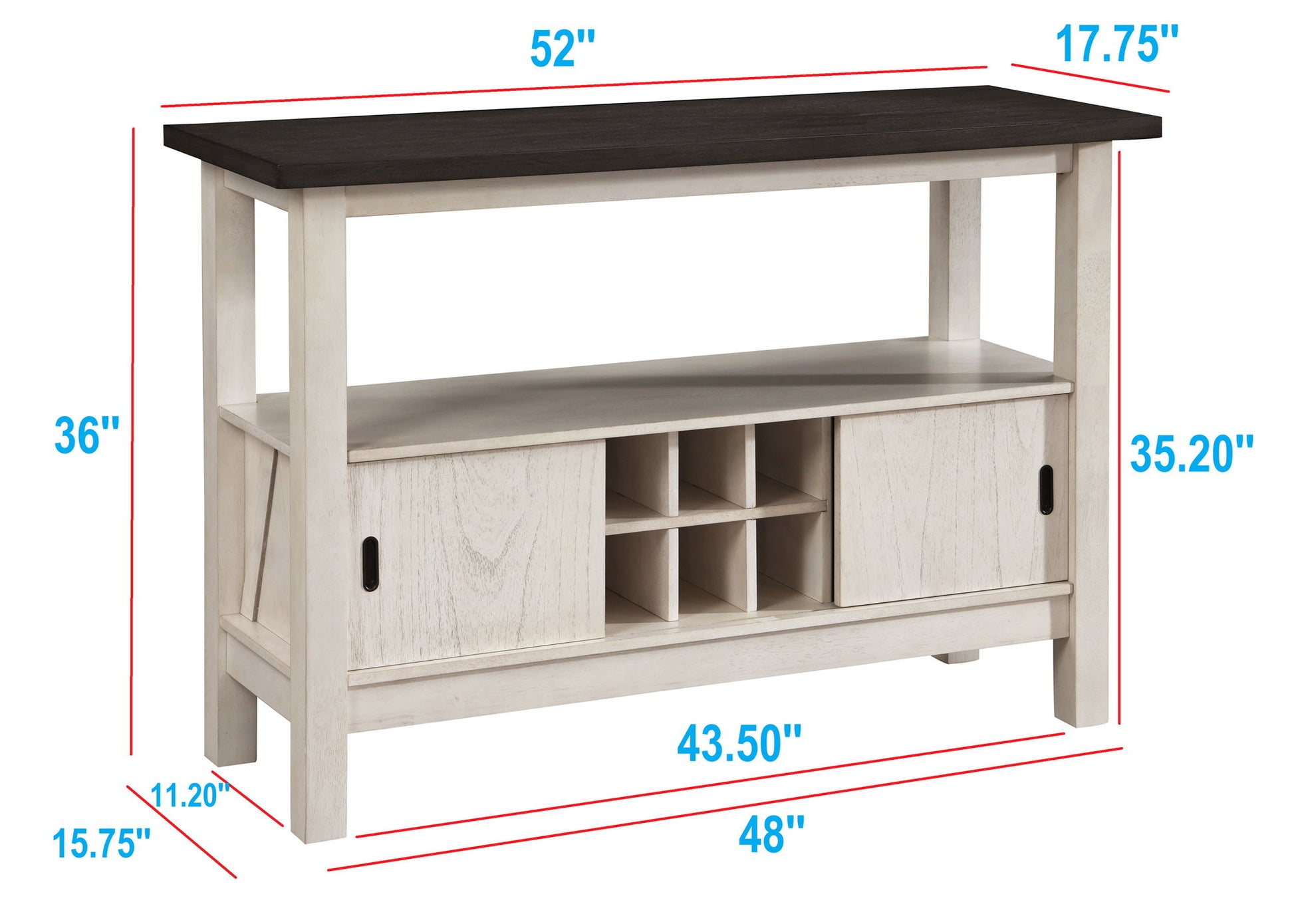 52.0"W x 17.75"D x 36.0"H - 99.0 lb