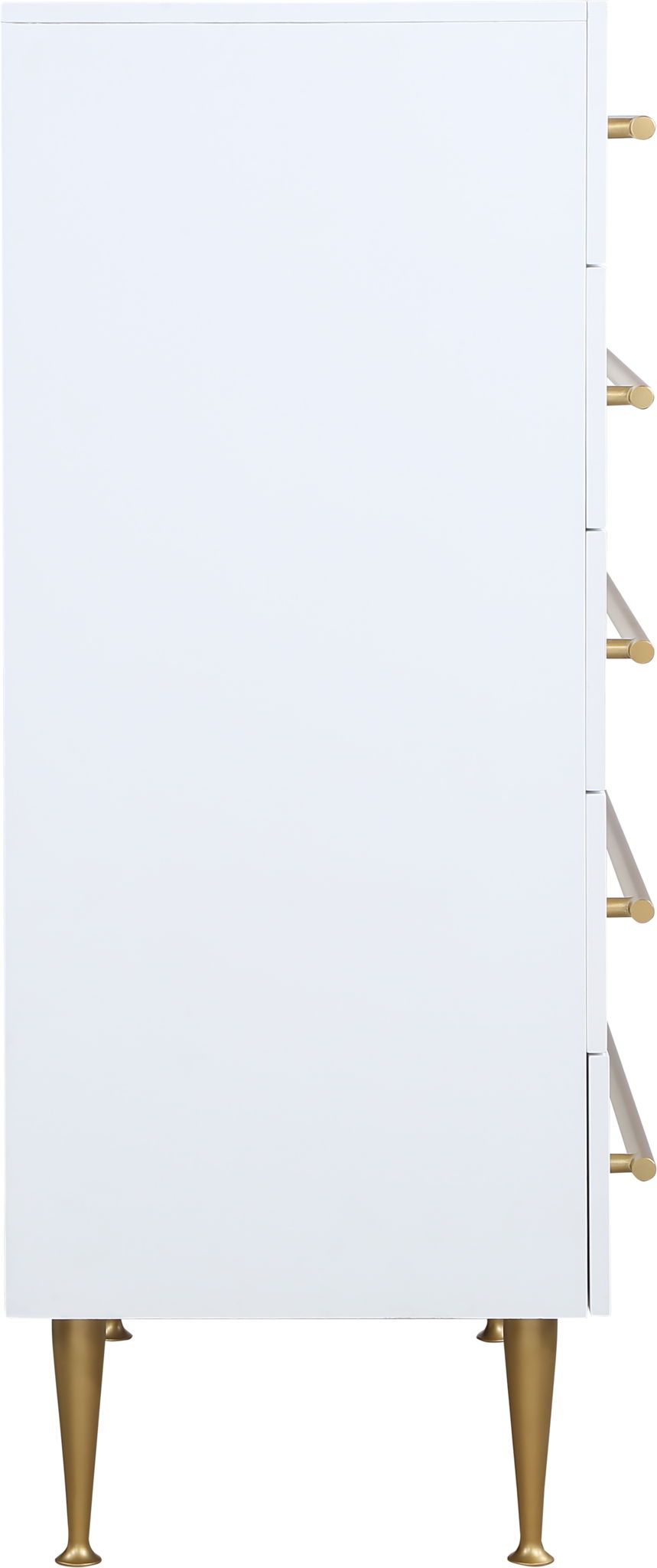 Turn to the Marisol chest to make a big impression in your modern bedroom. This contemporary piece looks great on its own or paired with other items in the Marisol collection. Eye-catchingly elegant, this piece features a rich finish with brushed metal legs and handle for an up-to-the-minute vibe in your bedroom sanctuary. Minimalist hardware adds functionality without overpowering the unit. Wood construction adds to its durable design.