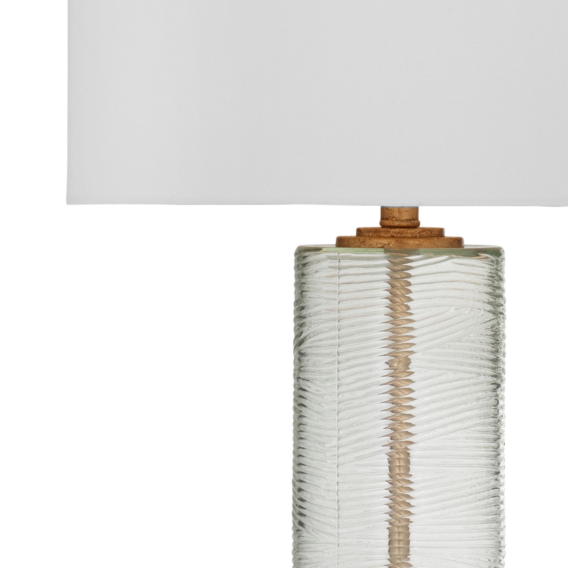 Clear ribbed glass and a gold leaf finish provide the Maroa Table Lamp with chic simplicity that compliments any living space.