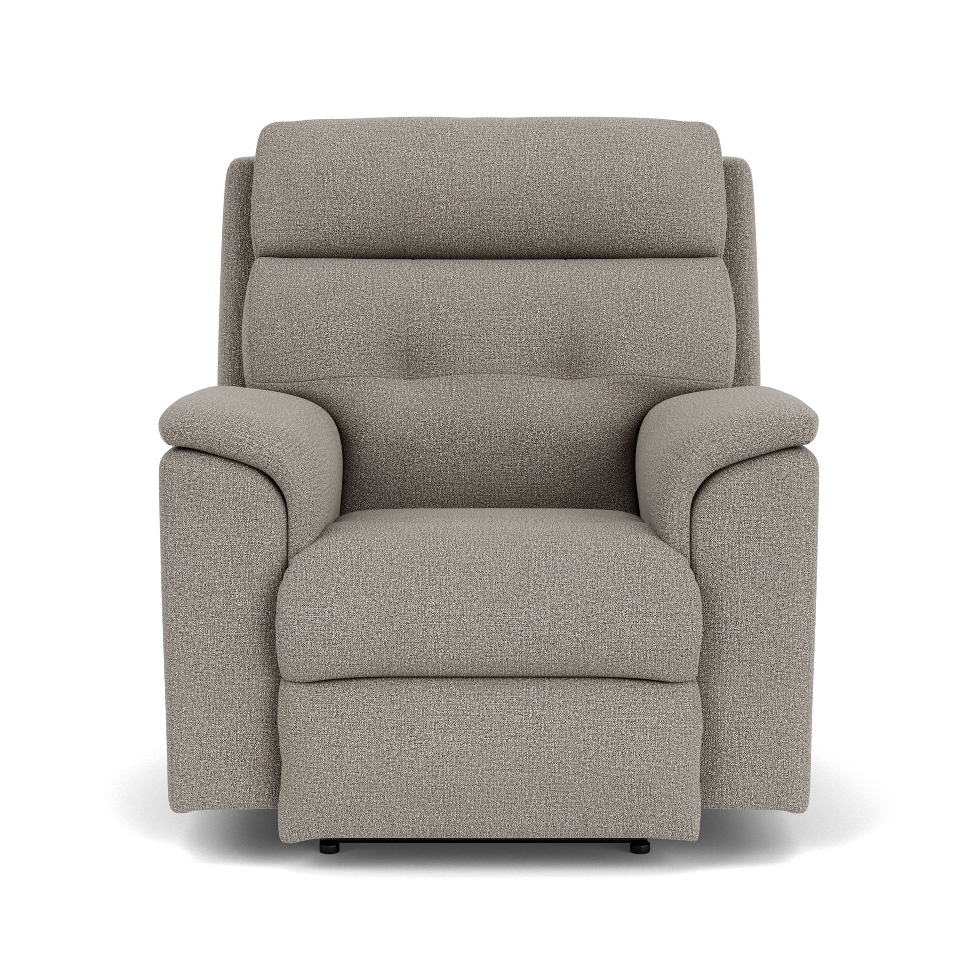 Tufted in transitional style. Mason is a transitional motion style with smooth lines and understated elements. It features a generously scaled pad-over sloped arm, conventional flat seat and a divided chaise pad design. This power rocking recliner's high-divide back cushion provides optimal headrest positioning and biscuit tufting on the lower back provides optimal back support. The Blue Steel Spring ensures this piece is in it for the long-haul. The power button adjusts the headrest and recline simultaneously, letting you change angles from an upright to a fully reclined position. Charge your electronics with the provided USB port in the power button. Mason is sure to provide a fashionable look to your space.