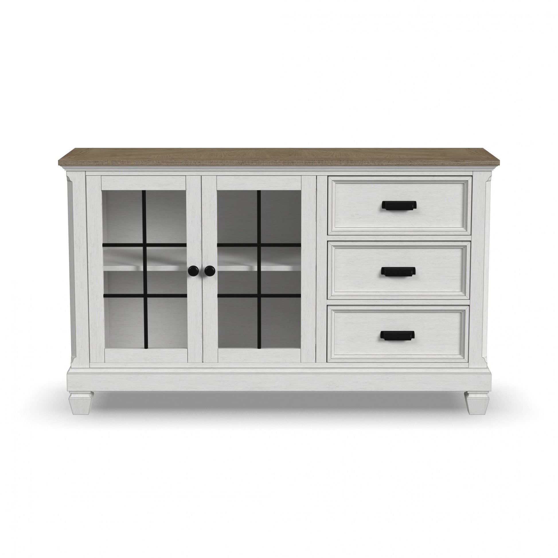 - The back panel contains an escape hole to the cabinet that allows cords to be ran through