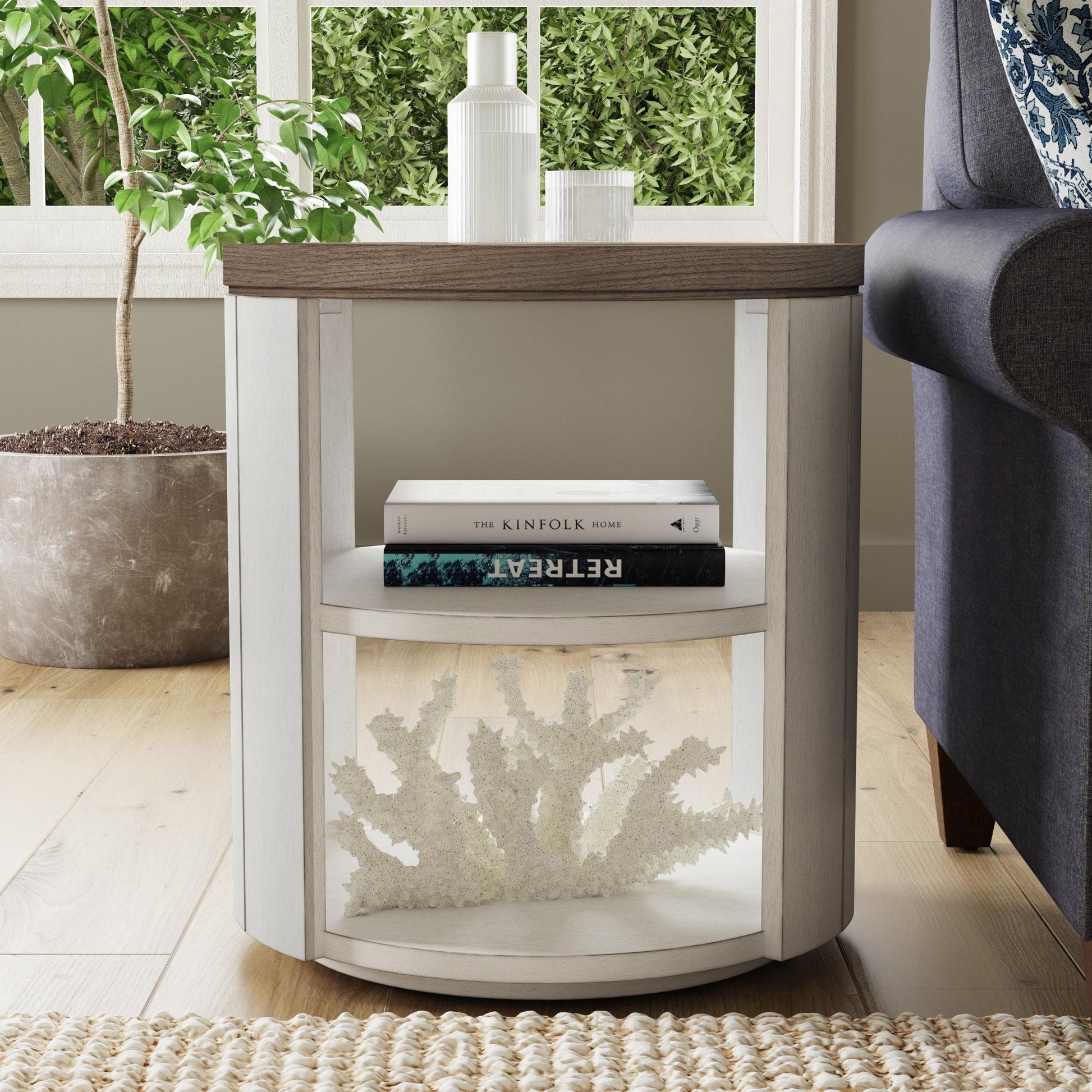 Create a cozy ambiance full of casual charm in your home with the Melody round end table. Bringing a timeless warmth with cottage-inspired design elements and a beautifully soft, weathered look, this table features an open design and adjustable shelf for storage and display versatility. Enchanting details include a distressed white base with an inlaid gray parquet top. Pair it with other Melody furnishings for a perfectly coordinated look. Exceptionally built with solid wood construction, the Melody round end table is well-crafted to offer years of lasting enjoyment.