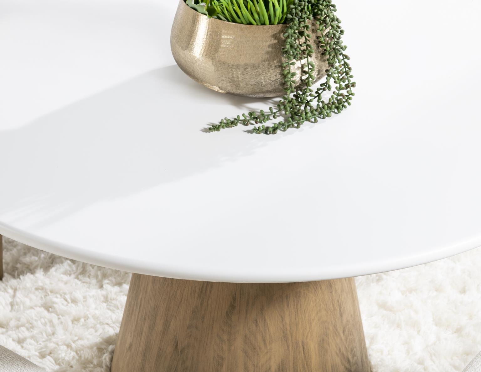 Melrose - Complete Round Dining Table - Cloud White And Desert Oak