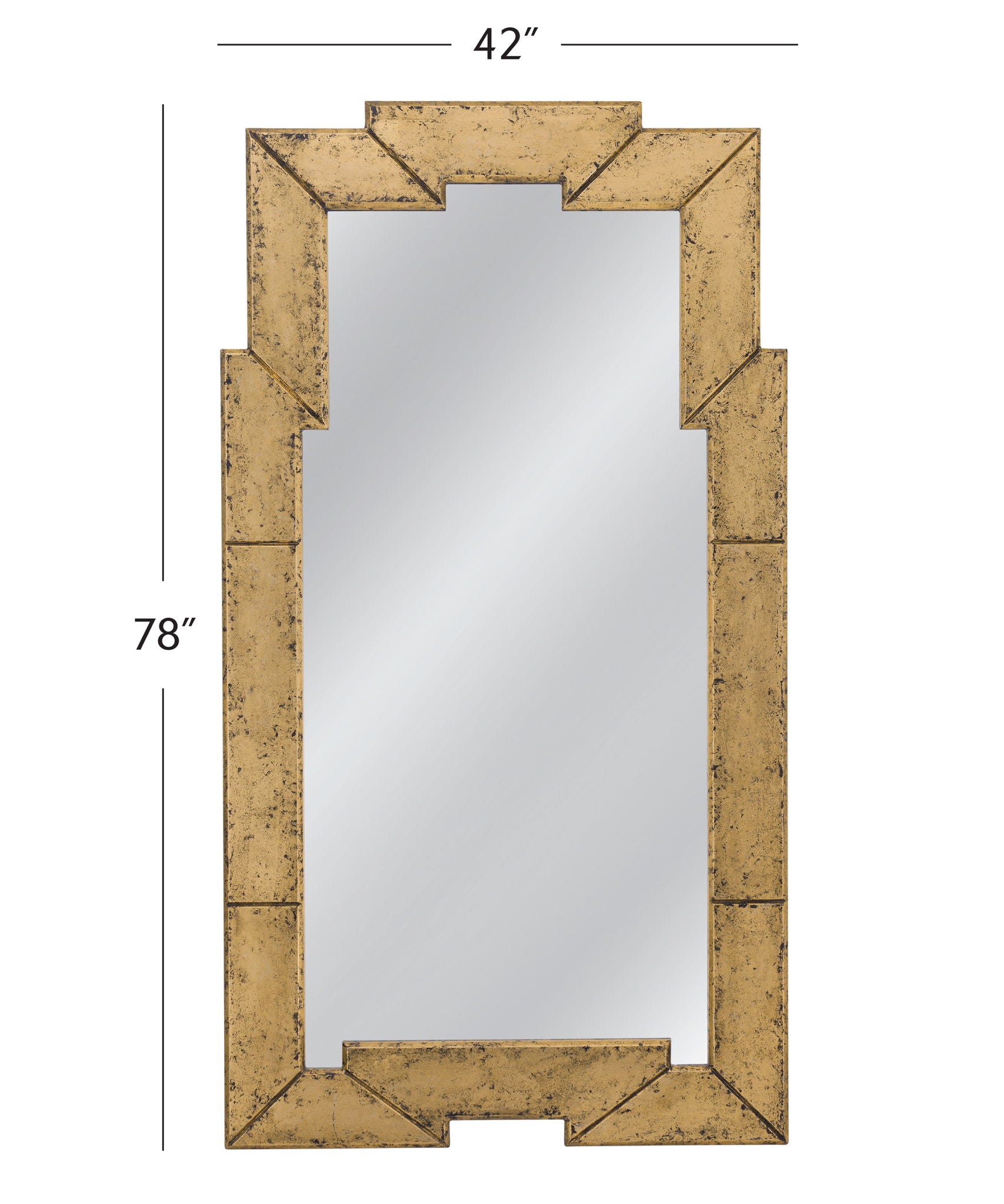 The Metouro Floor Mirror features an art deco-inspired shape with a beautifully antique gold gilded frame, adding a touch of timeless elegance to any room. The modern traditional design blends classic charm with contemporary appeal, making it a versatile piece that complements a variety of interiors. The rich gilded frame enhances the mirrors reflective surface, creating a striking focal point in your space. The Metouro Floor Mirror brings sophistication and style, offering both beauty and functionality for your home decor.