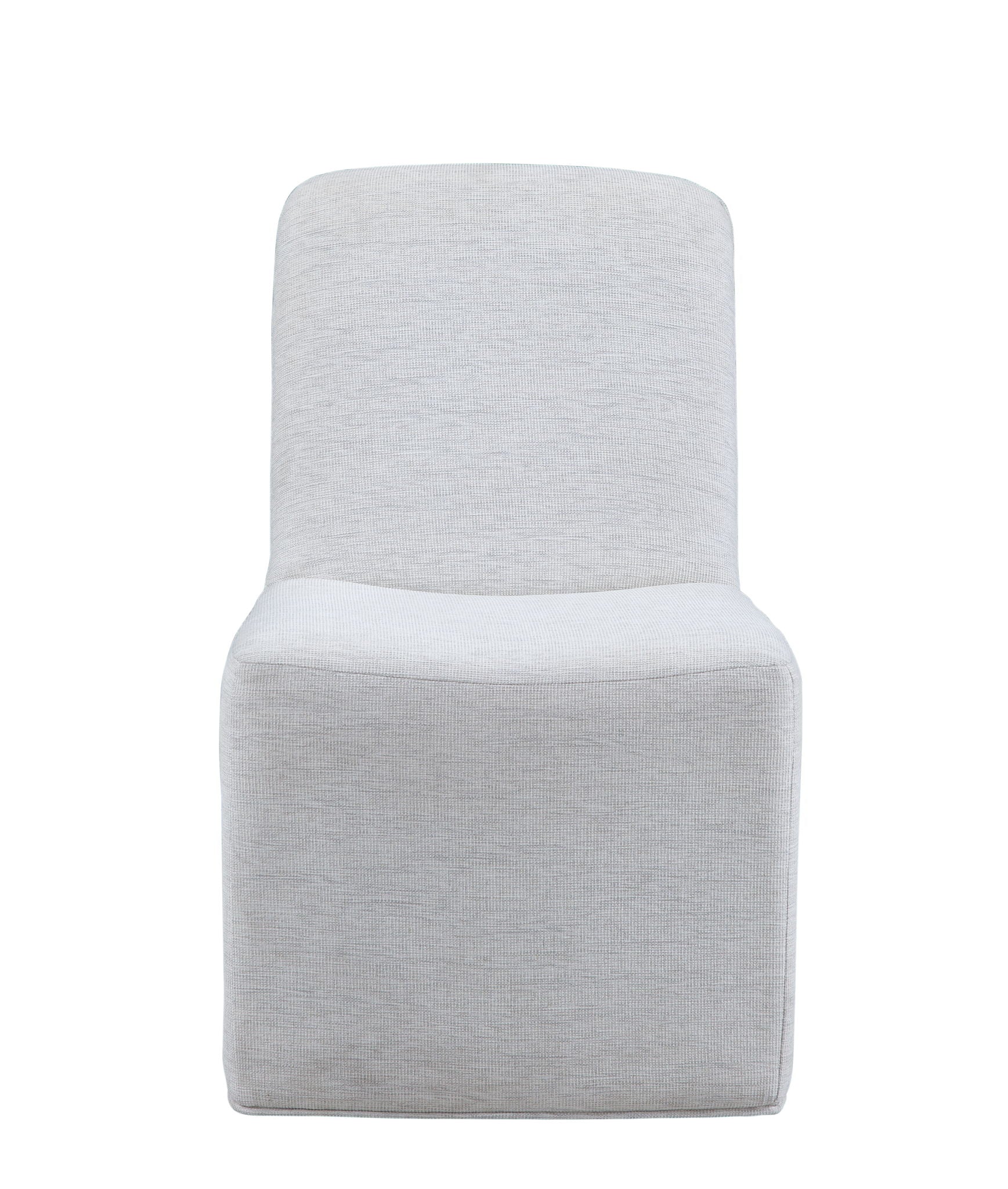 Introducing the Meyer Dining Chair, where modern-inspired design meets comfort in a linen-like fabric with an oyster hue. Crafted from 100% polyester for durability, this chair is a statement of thoughtful design and reliability. With four casters for easy mobility, Meyer effortlessly blends style with practicality, inviting you to create a warm and inviting dining space.
