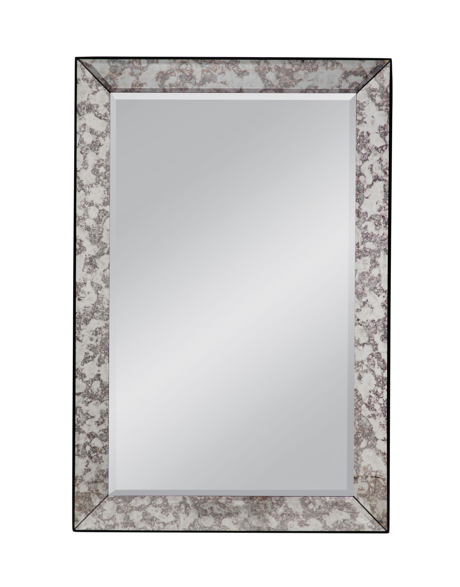 - Classic rectangular frame adorned with antiqued mirror