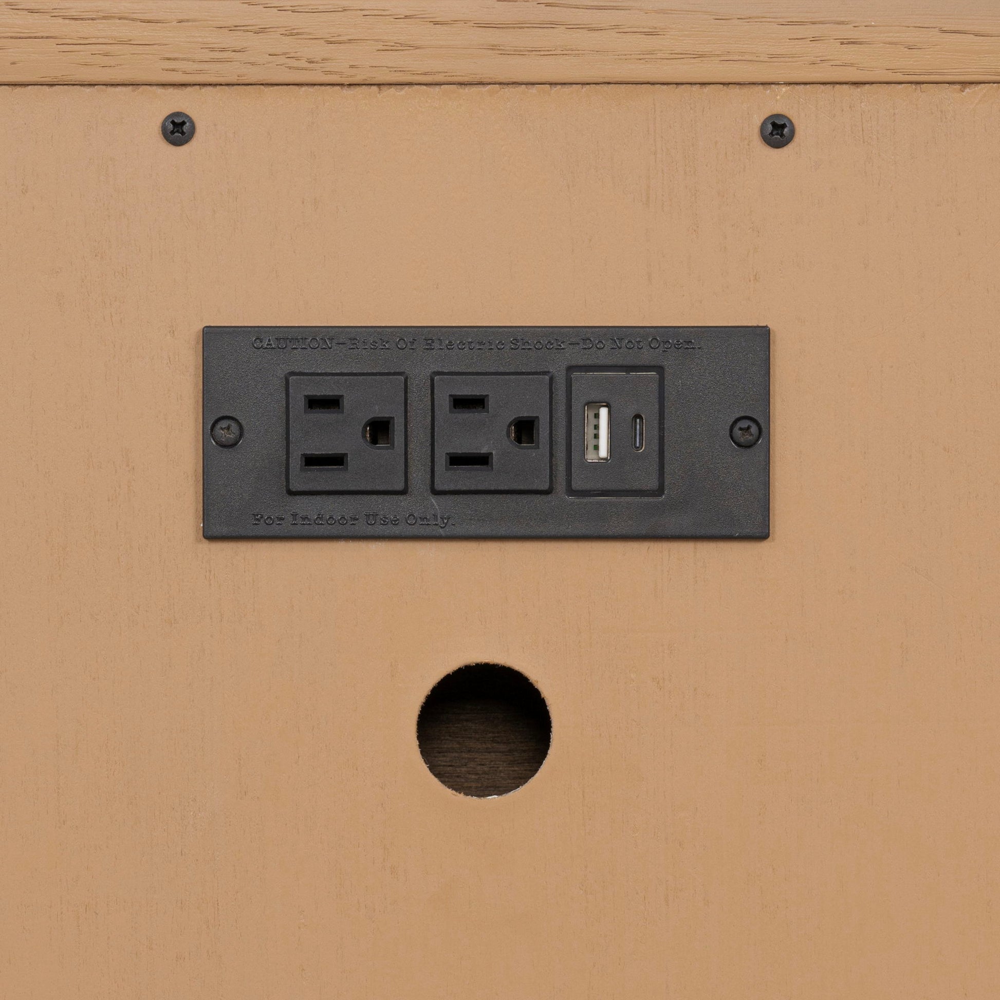 Sophistication meets rustic, industrial charm with the Millwork entertainment center. Seamlessly blending high-contrast materials and finishes in perfect harmony, this piece makes a captivating statement in any living space. A textured steel frame is highlighted by warm copper undertones, while a distinctive 76” wood top exudes character with natural knots, subtle saw marks and a cerused finish that accentuates the rich umber wood grain. Above the drawers and cabinets, open shelving offers both form and function, perfect for displaying curated décor, housing media components, or keeping everyday essentials within reach while maintaining an airy, balanced silhouette.