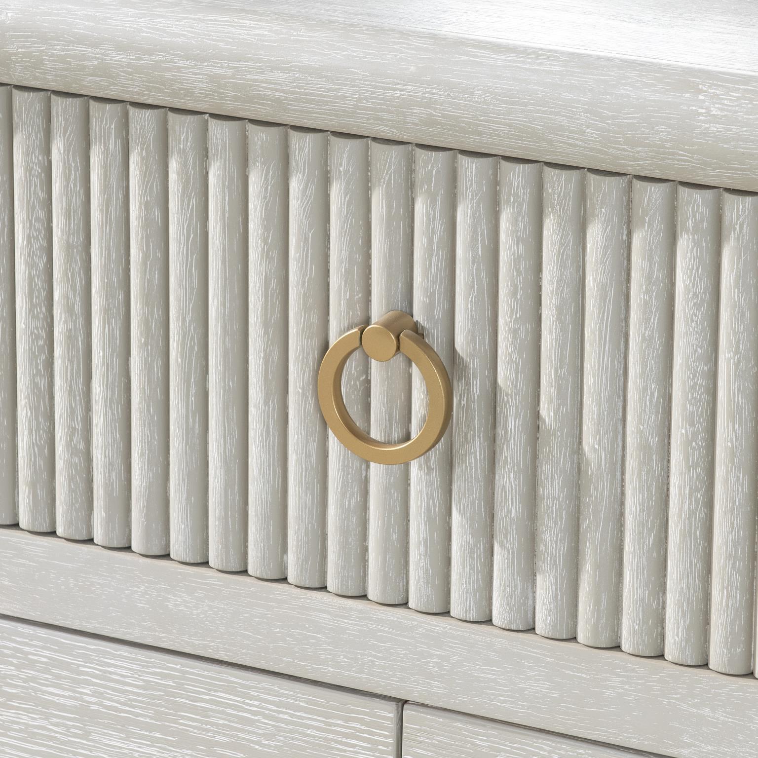 Approachable glamour. That's the look of the Miramar Total Home Collection from Legacy Classic - Modern. The collection features and acrylic accents bold fluting detail and waterfall edges. The accent finish is used in banding on case bases and foot rails table bases and on the posters of the Canopy Bed and low-post bed.