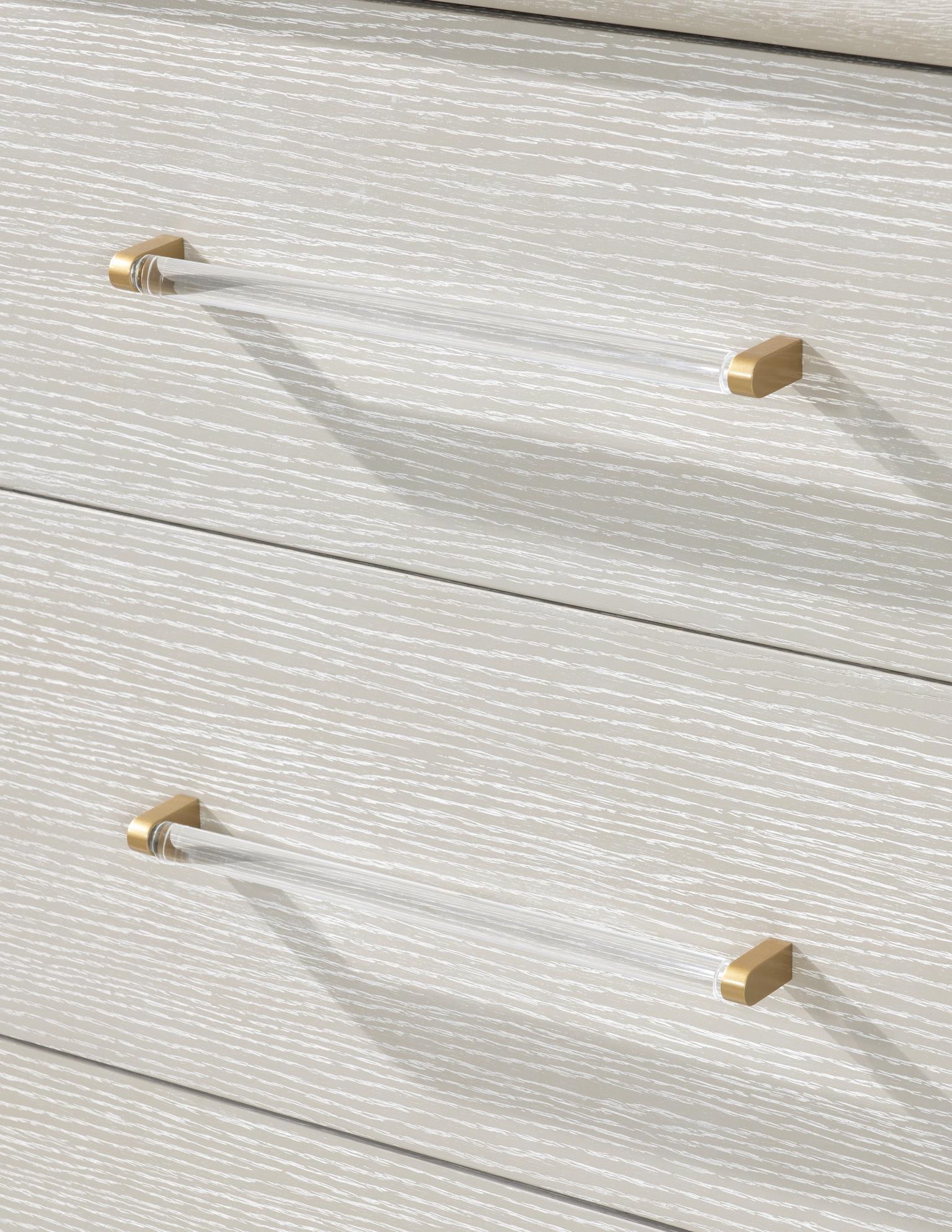 Approachable glamour. That's the look of the Miramar Total Home Collection from Legacy Classic - Modern. The collection features and acrylic accents bold fluting detail and waterfall edges. The accent finish is used in banding on case bases and foot rails table bases and on the posters of the Canopy Bed and low-post bed.