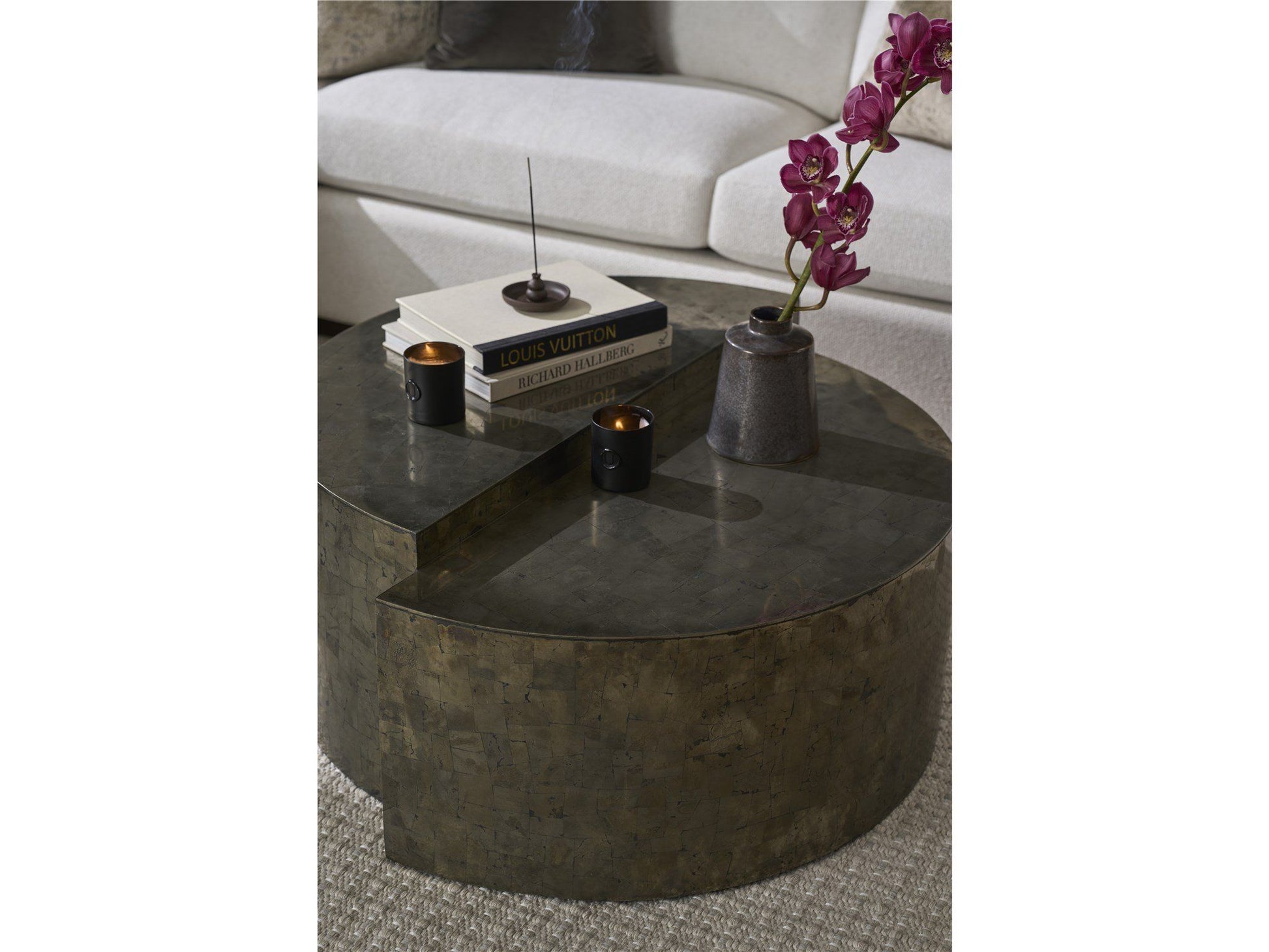 The Cosmo Cocktail Table makes a bold statement in any living space. Its unique, geometric design showcases the natural shimmer of pyrite, creating a captivating centerpiece that's both stylish and functional.