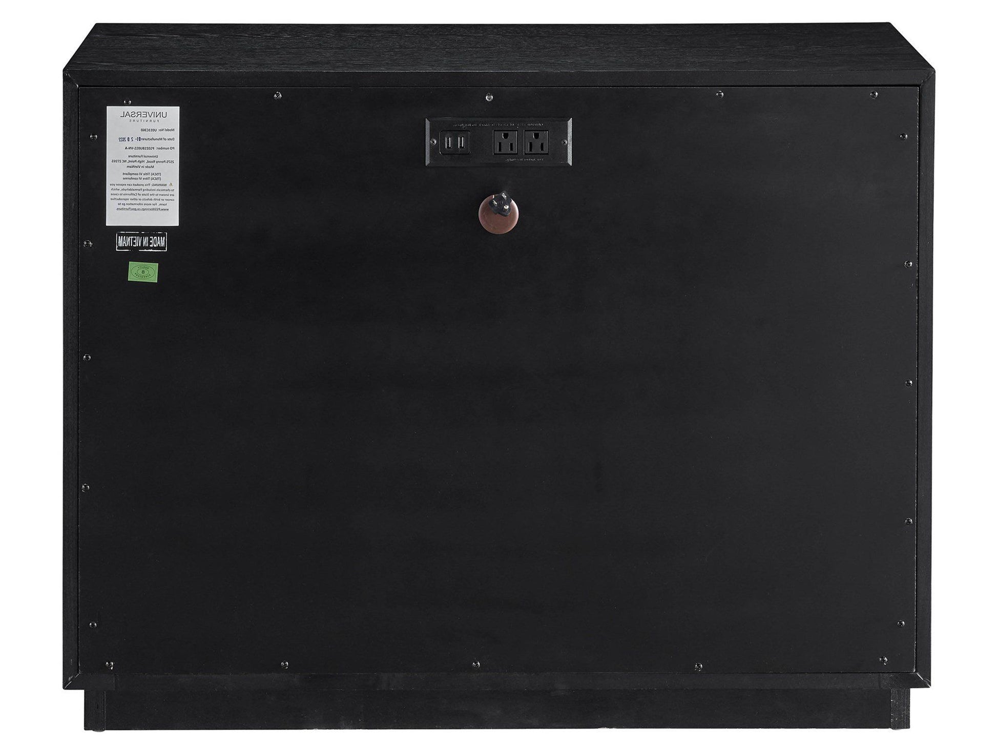 A celebration of texture, the Collins Chest is built with three spacious drawers intricately accented by a geometric carved details and sleek bar hardware. Available in a charcoal finish, it, includes an electrical outlet and two USB ports.