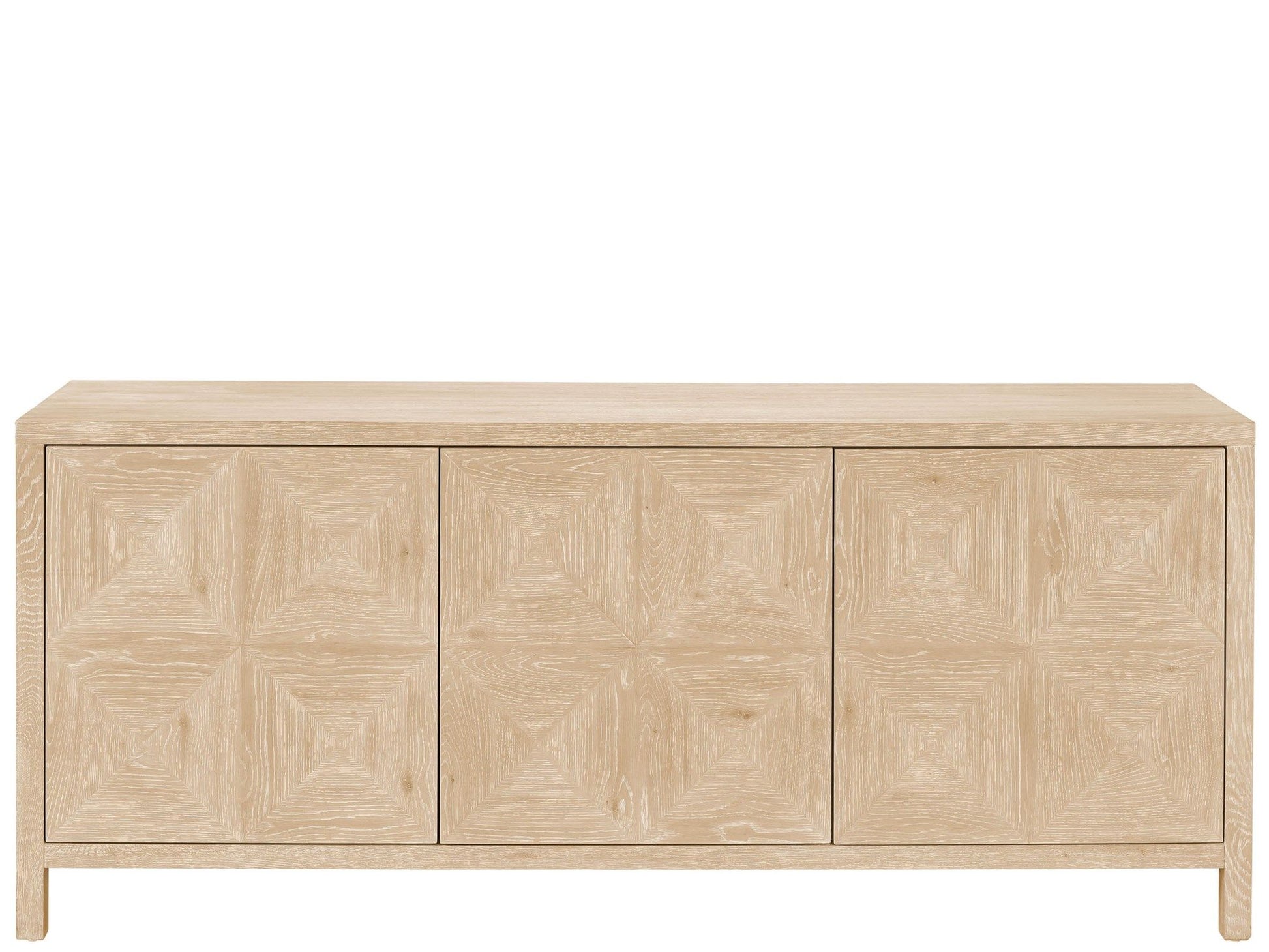 Introduce a touch of elegance into living spaces with the Sadie Credenza, a stunning storage furnishing featuring 3 doors with adjustable shelves encased in a subtly etched, geometric-inspired silhouette.