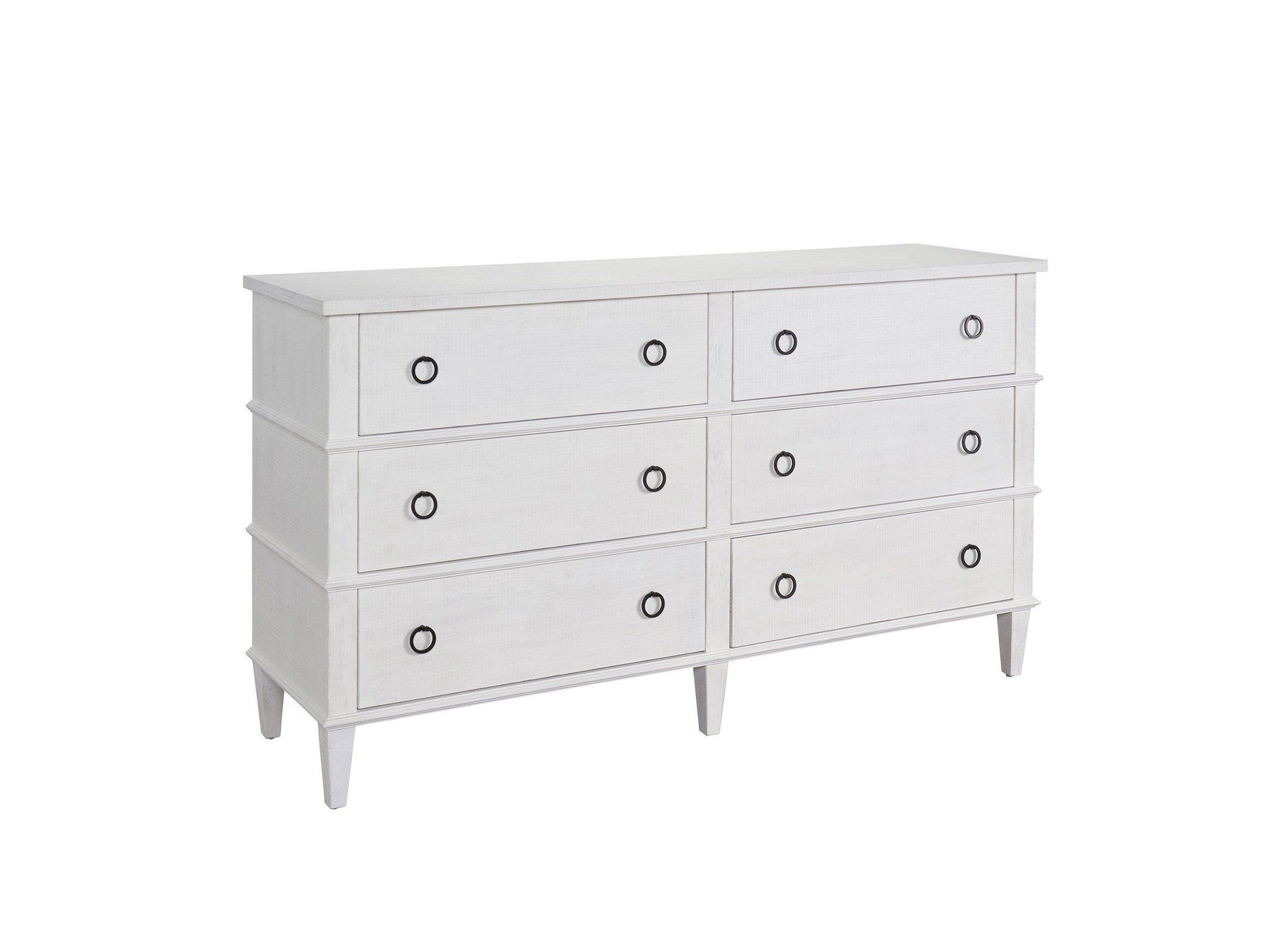 Boasting six spacious drawers accented by ring pull hardware, the Six Drawer Dresser is casual yet elegant with delicate etched detailing.