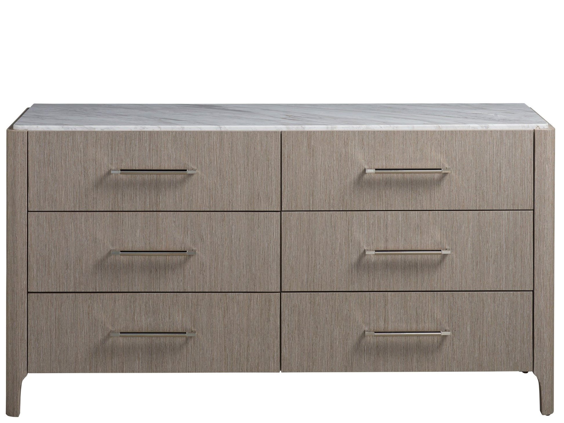 Add depth and intrigue to spaces with the Soren Dresser, a neutral-hued storage piece featuring a smooth stone top and six spacious drawers accented by sleek bar hardware.