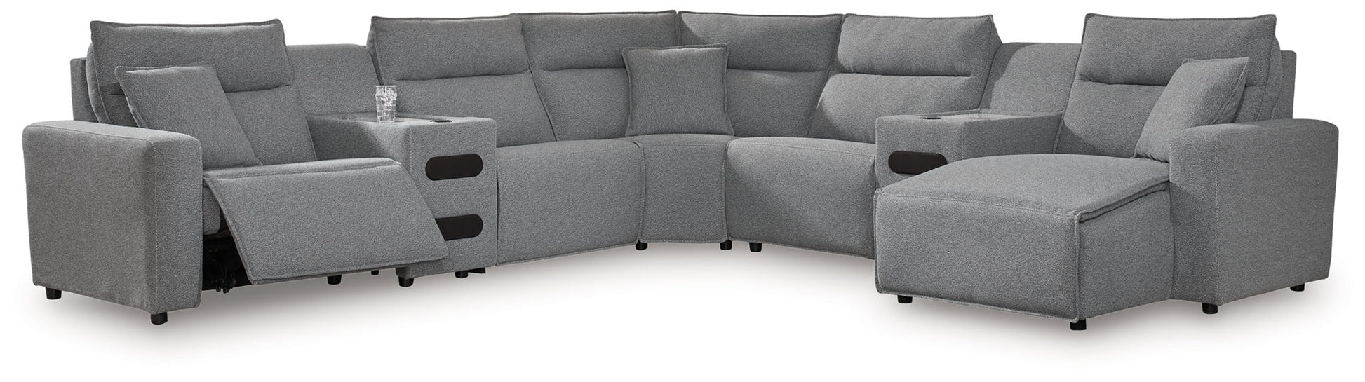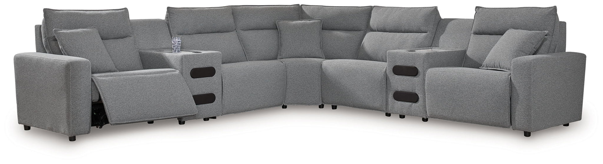 ModMax II - 7-Piece Power Reclining Sectional With LAF Power Chaise And With Audio Console - Salt And Pepper