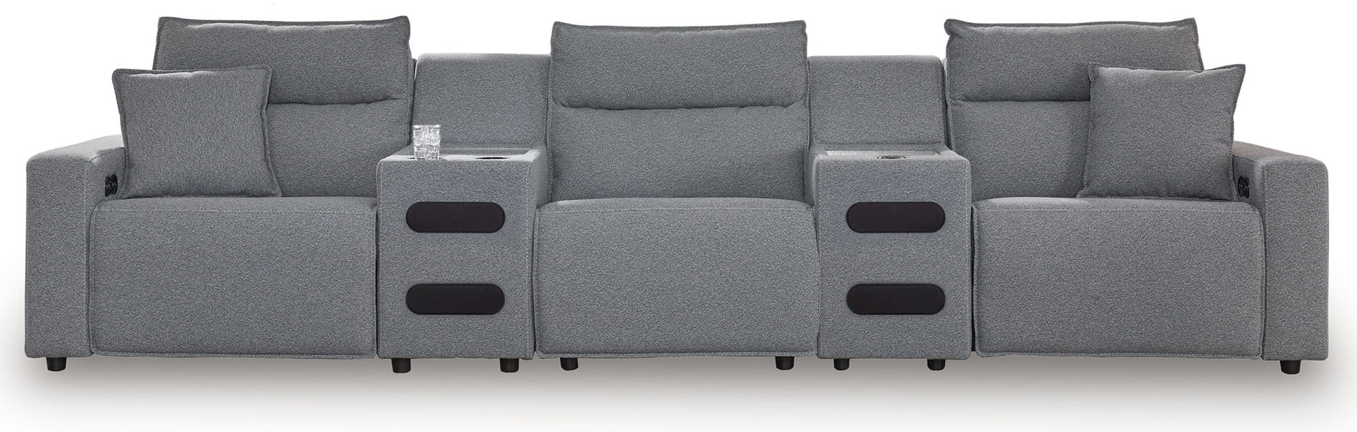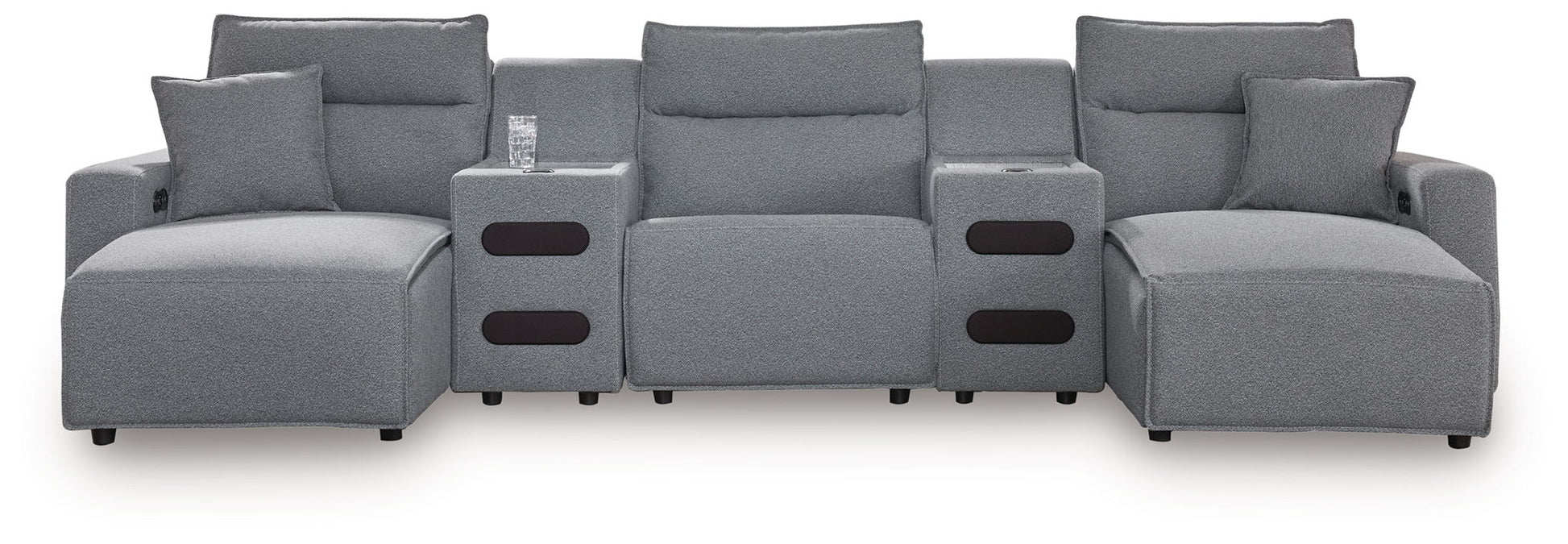 ModMax II - 5-Piece Power Reclining Sectional With Double Chaise And 2 Audio Consoles - Salt And Pepper