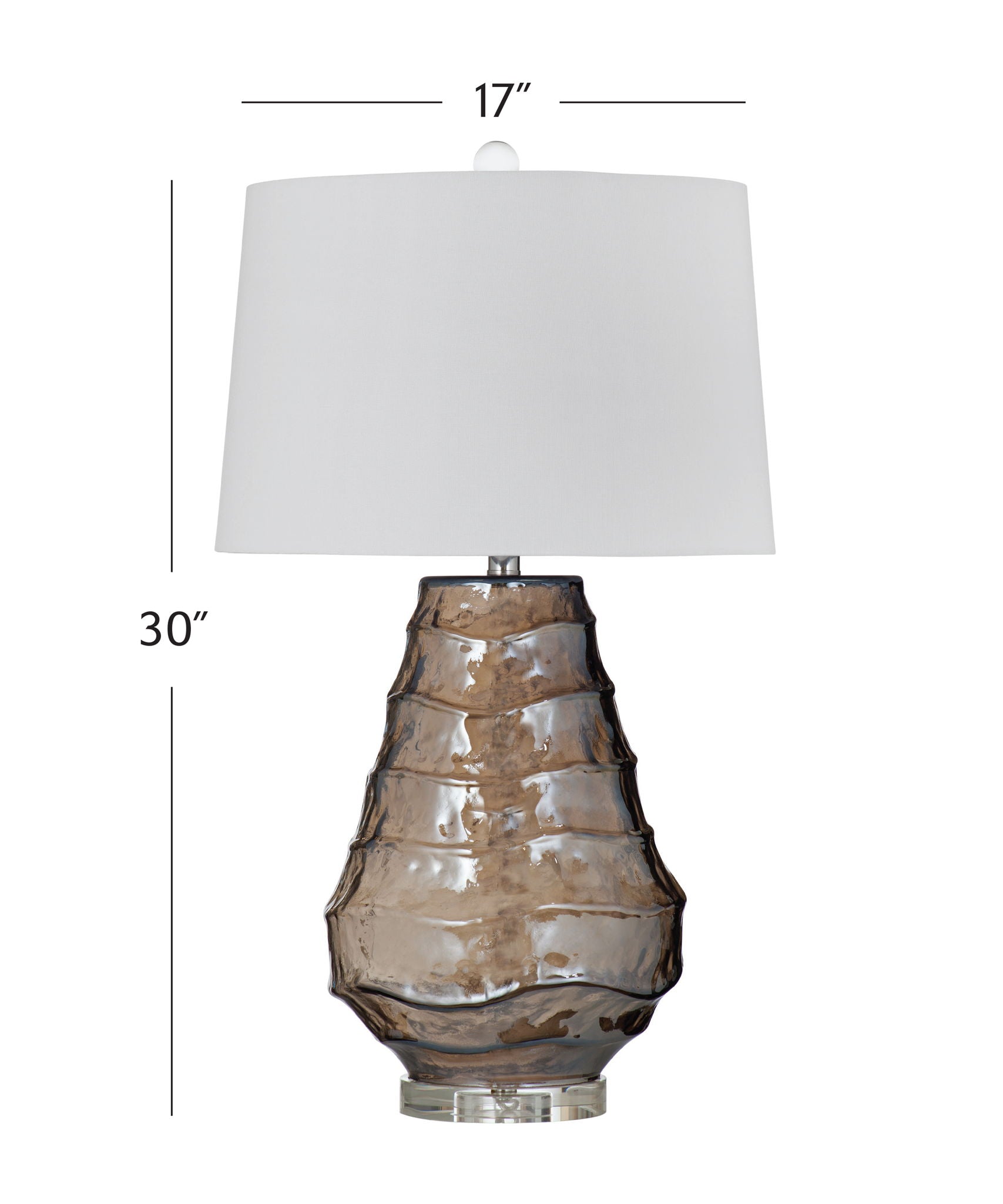 The Monaco Table Lamp embodies contemporary elegance, presenting a modern design paired with a white tapered shade. Adorned with a finish in grey and light brown, this lamp showcases a chic color palette that adds sophistication to any space. Crafted from a combination of art glass and a crystal base, the Monaco Table Lamp stands as a testament to meticulous craftsmanship. Its thoughtfully chosen materials and design elements make it a refined addition to interior decor, seamlessly blending modern aesthetics with timeless allure. The grey and light brown finishes complement the art glass and crystal base, creating a visually harmonious ensemble. With its stylish design and meticulous attention to detail, the Monaco Table Lamp not only adds a modern touch to any room but also provides a soft and inviting illumination, making it a versatile and impactful contribution to interior decor.