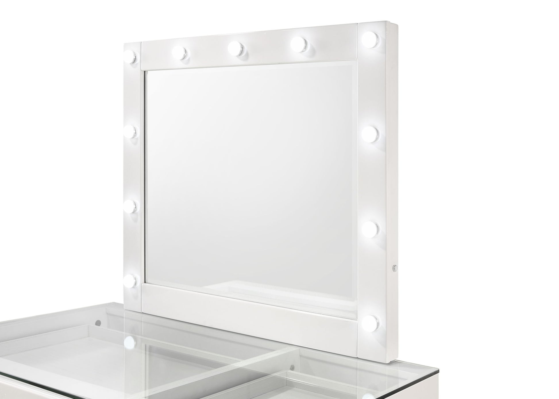 Morgan - Vanity Desk With Glass Top, LED Luxo Mirror & Stool - White