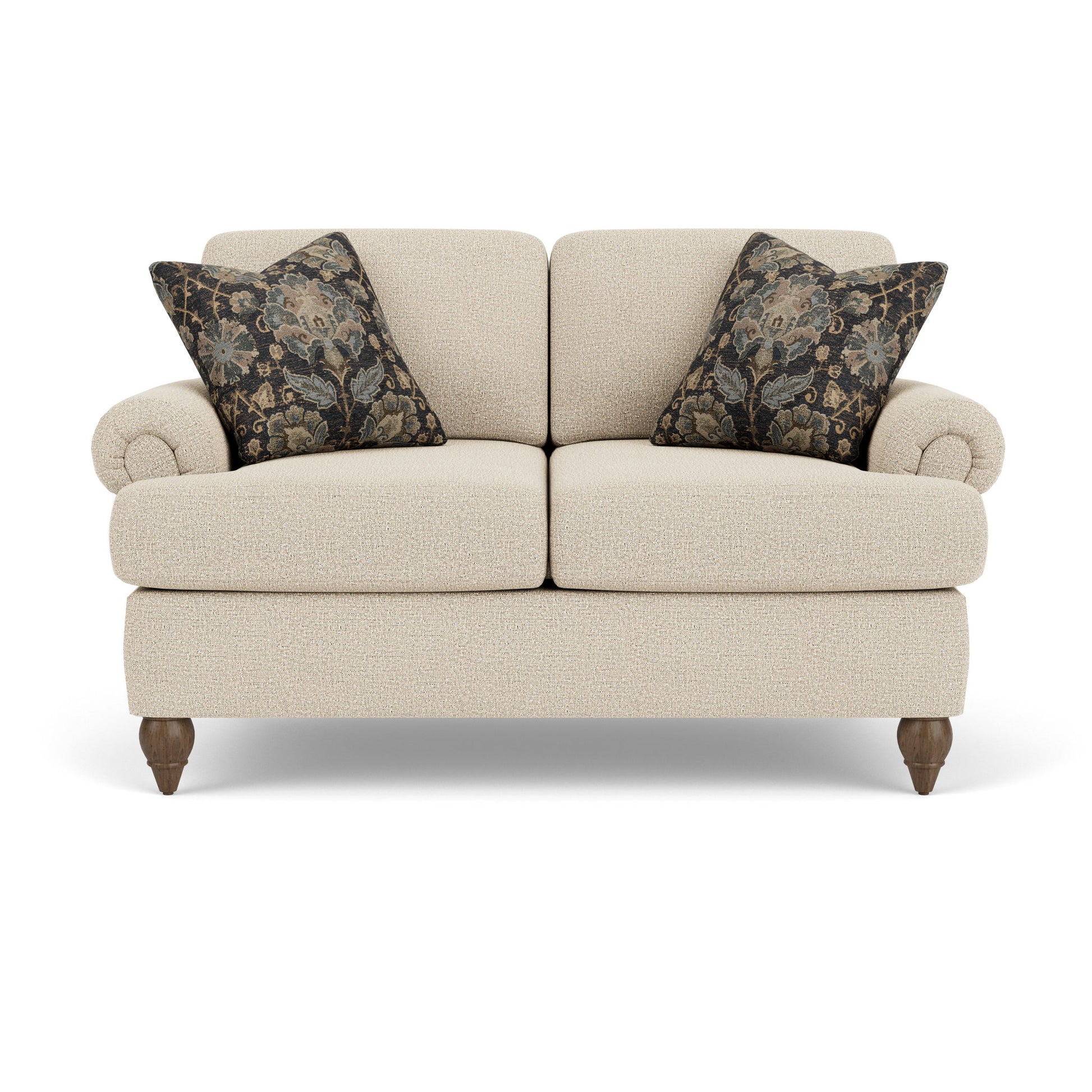 Moxy - Fabric Loveseat, T-Shaped Seat Cushion, Curved Sock Arms