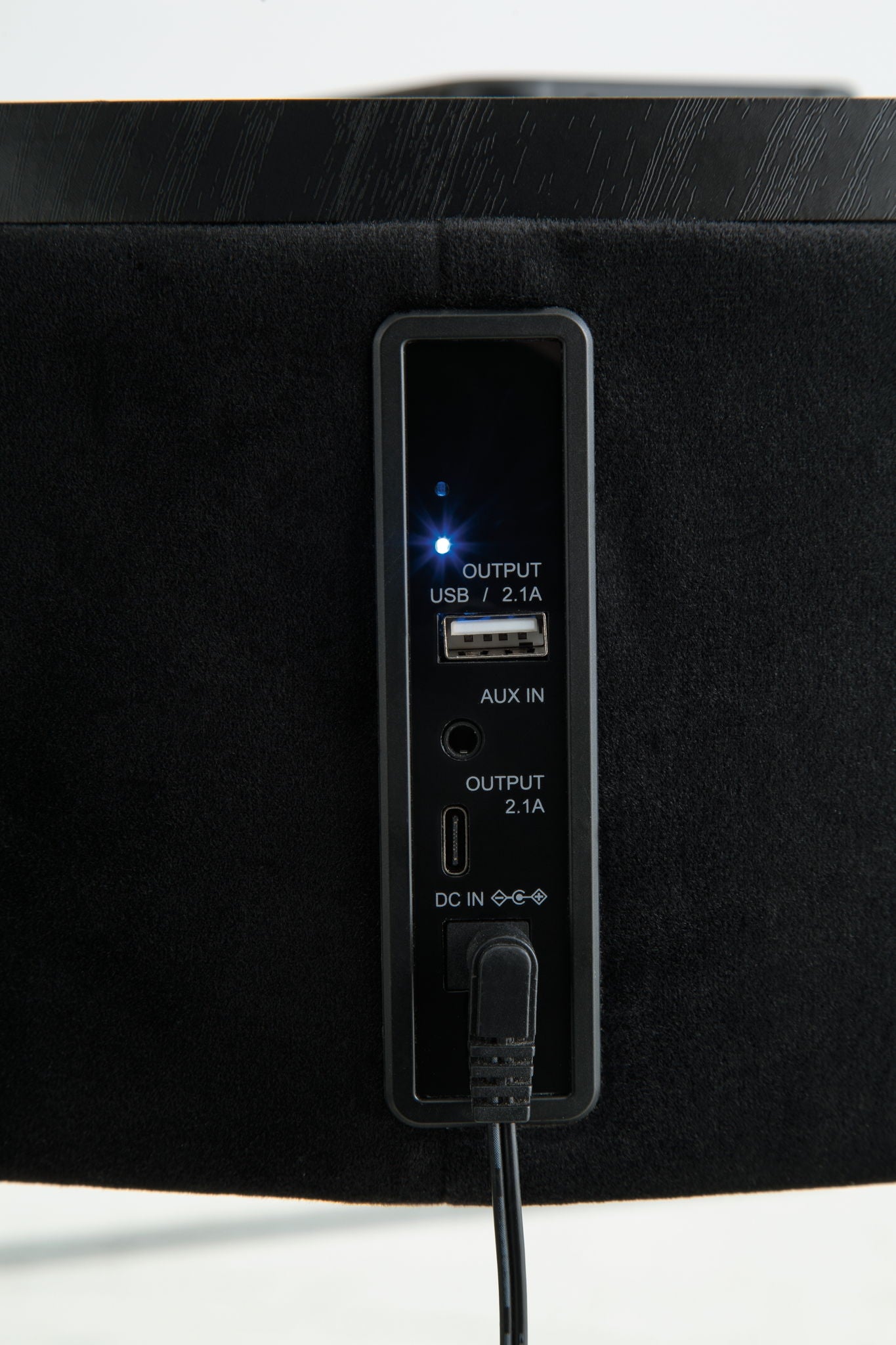 - Wireless connection; aux audio input; USB-C charging