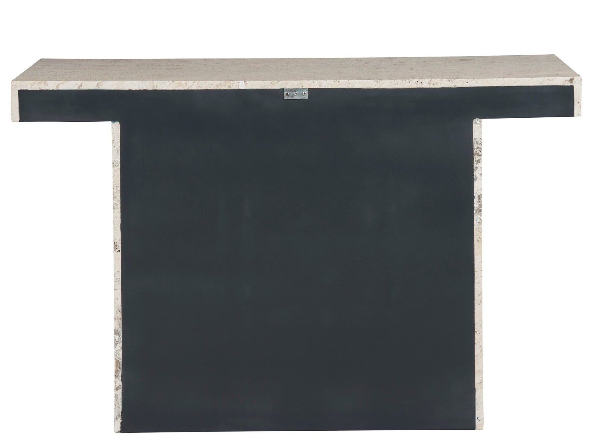 The Daxton Console Table stands out with its T-shaped silhouette, carved entirely from White Travertine. Its design is characterized by angular lines and sharp, cool edges, presenting a piece that exudes a minimalist yet bold aesthetic, perfectly suited for contemporary spaces that embrace clean, architectural forms.