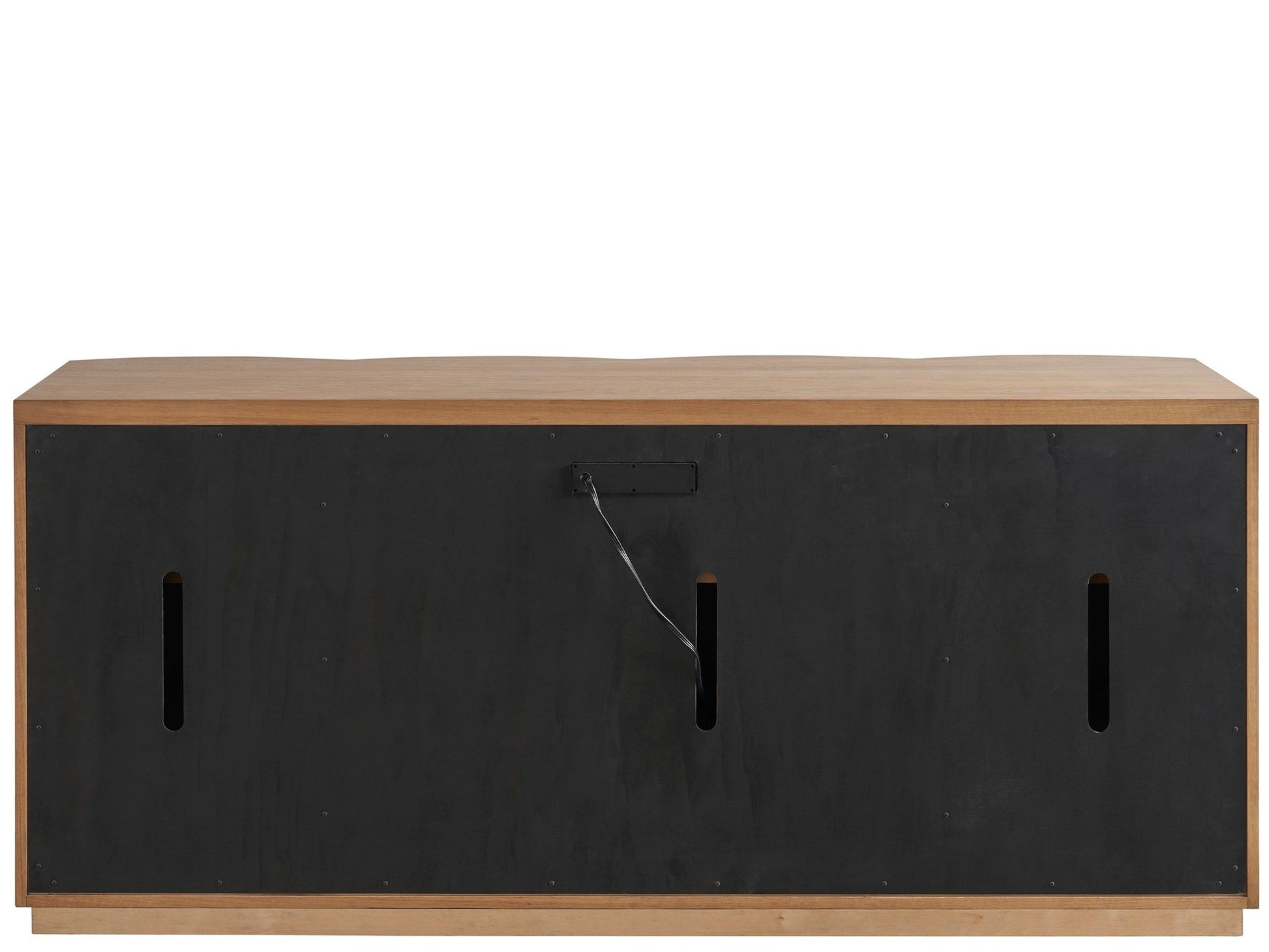 The Lumi Credenza stands out with its four tambour-wrapped doors, featuring touch latches for a sleek, hardware-free appearance. The entire body is adorned with delicate vertical ridging, adding a layer of depth and visual appeal to the piece. This design choice enhances the credenza's overall aesthetic, infusing spaces with a refined texture and a modern, sophisticated charm