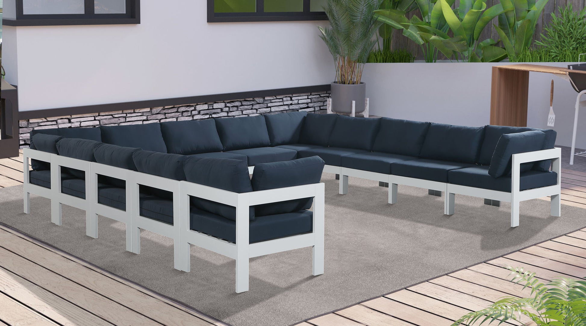 Nizuc - Outdoor Patio 13 Piece Modular Sectional With White Frame - Navy