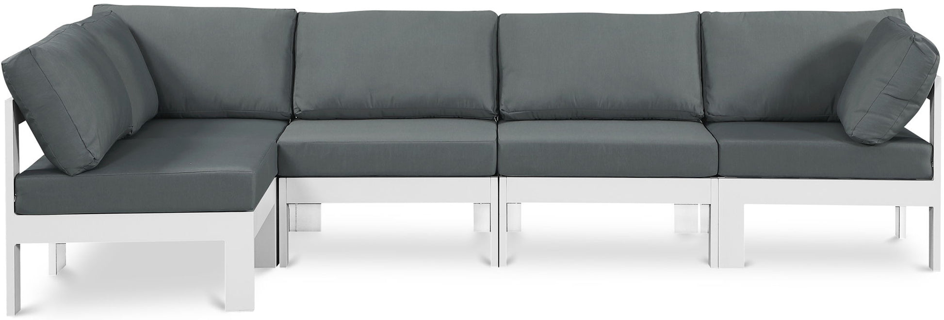 Nizuc - Outdoor Patio 4 Piece Modular Sectional With White Frame - Gray